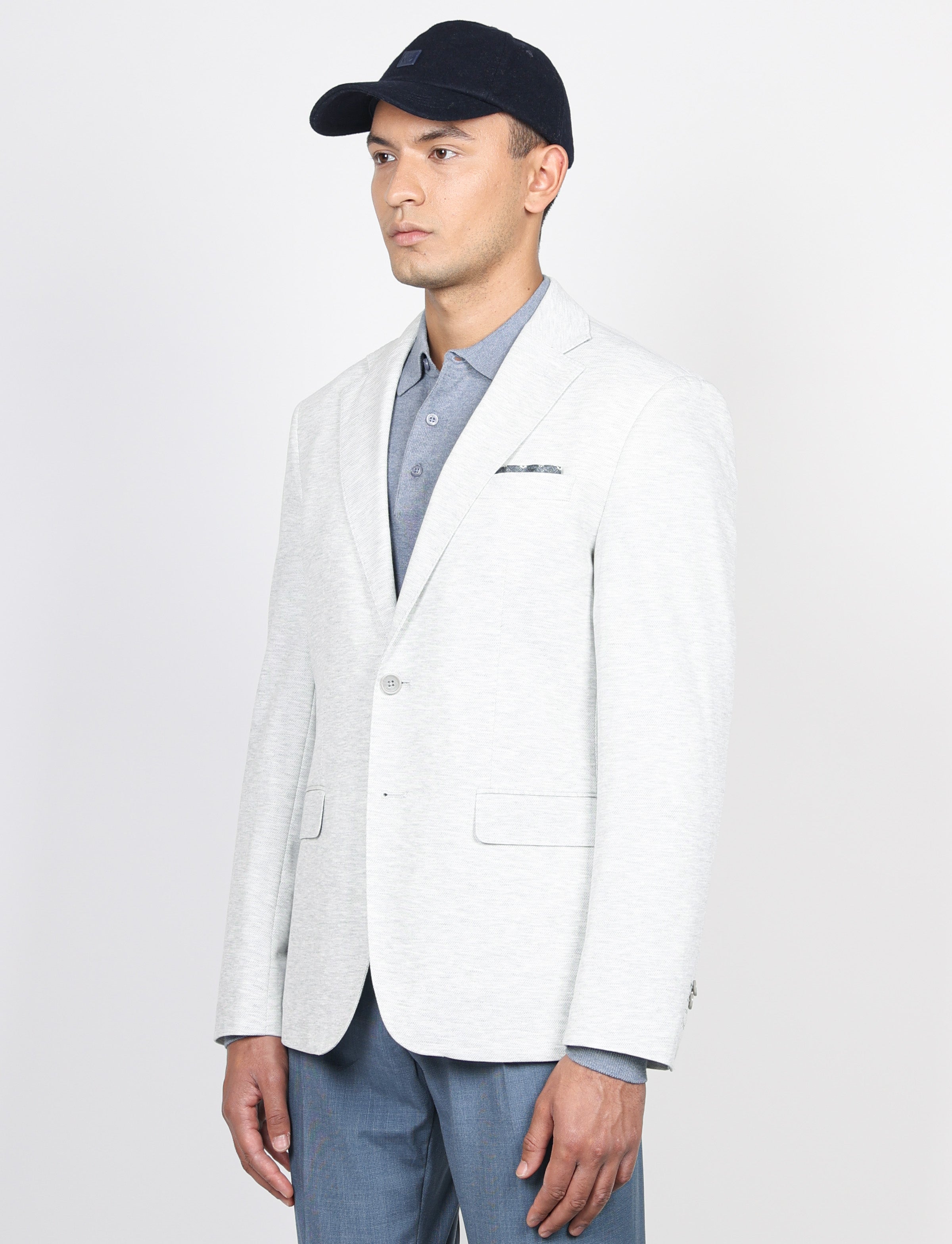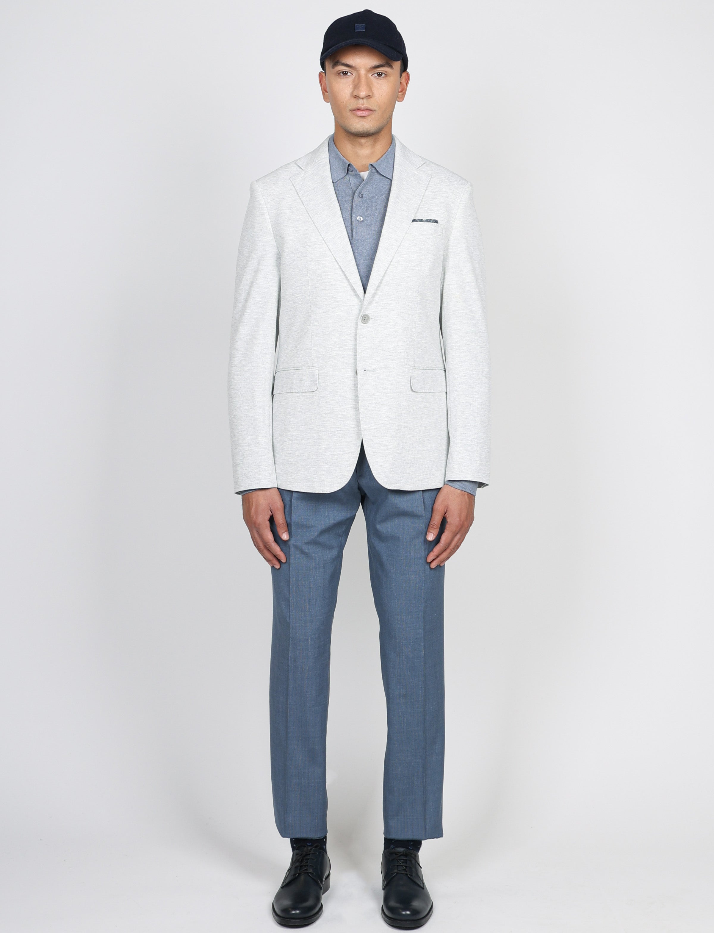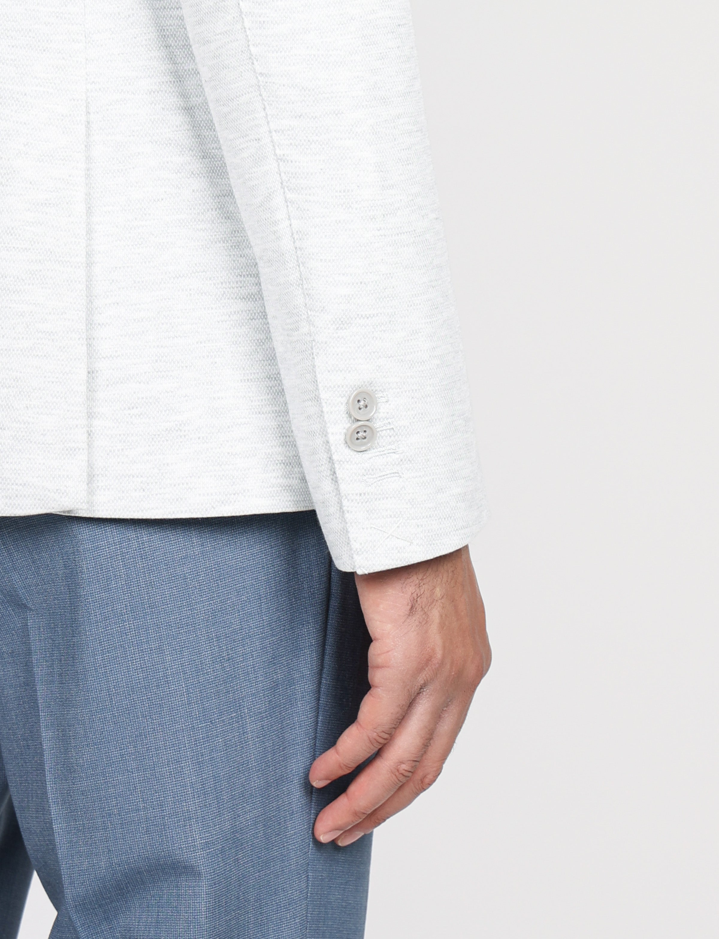 Elegante e contemporanea, questa giacca è realizzata in una maglia compatta e confortevole dalla texture melange, ideale per completare con stile i look di stagione. Il taglio slim valorizza la figura senza rinunciare al comfort, mentre i dettagli sartoriali ne esaltano la qualità e la cura artigianale.