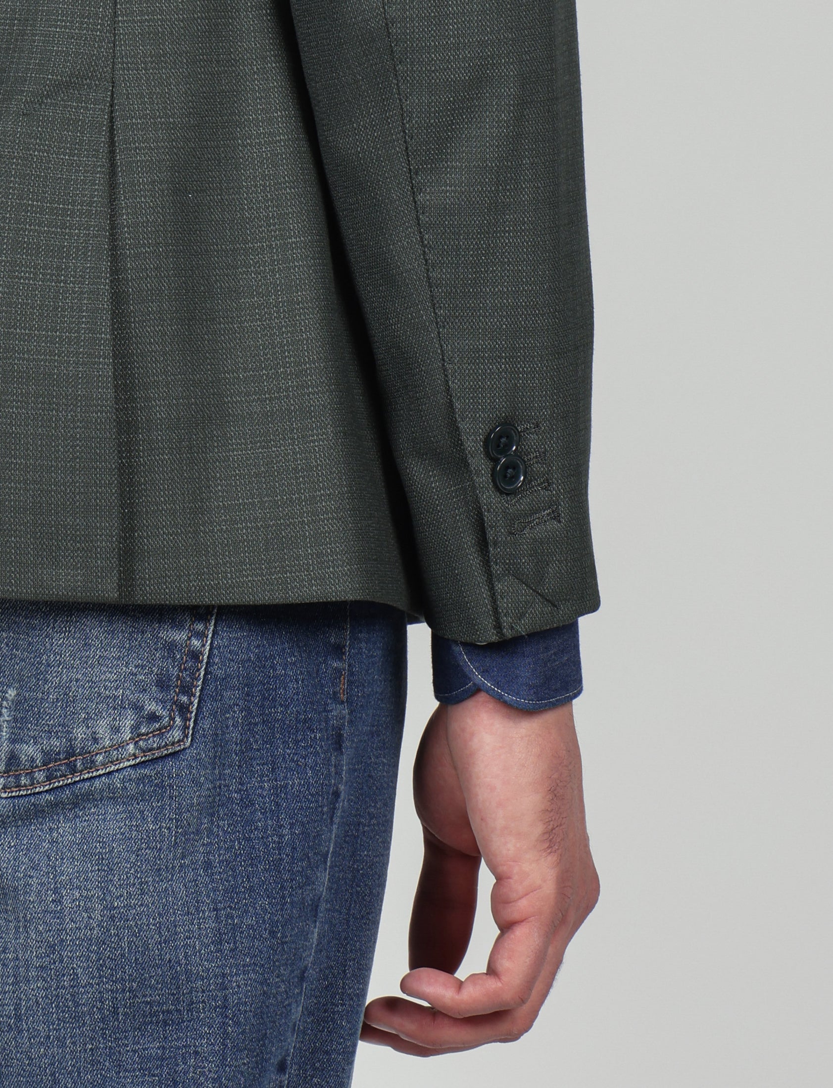 Fondo Manica con 4 Bottoni: Due asole aperte e due chiuse, dettaglio sartoriale distintivo.