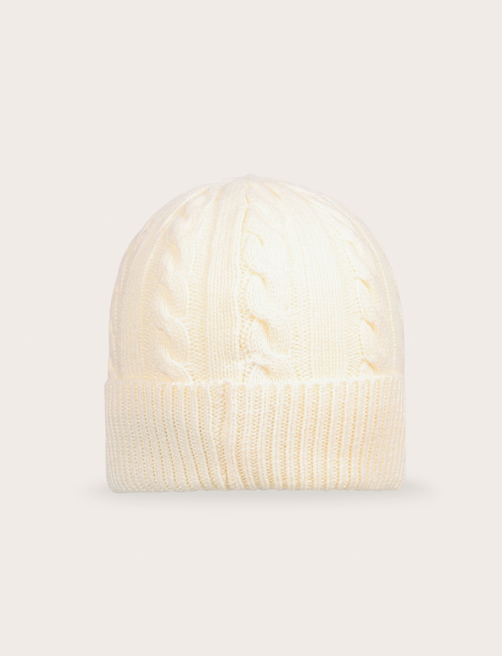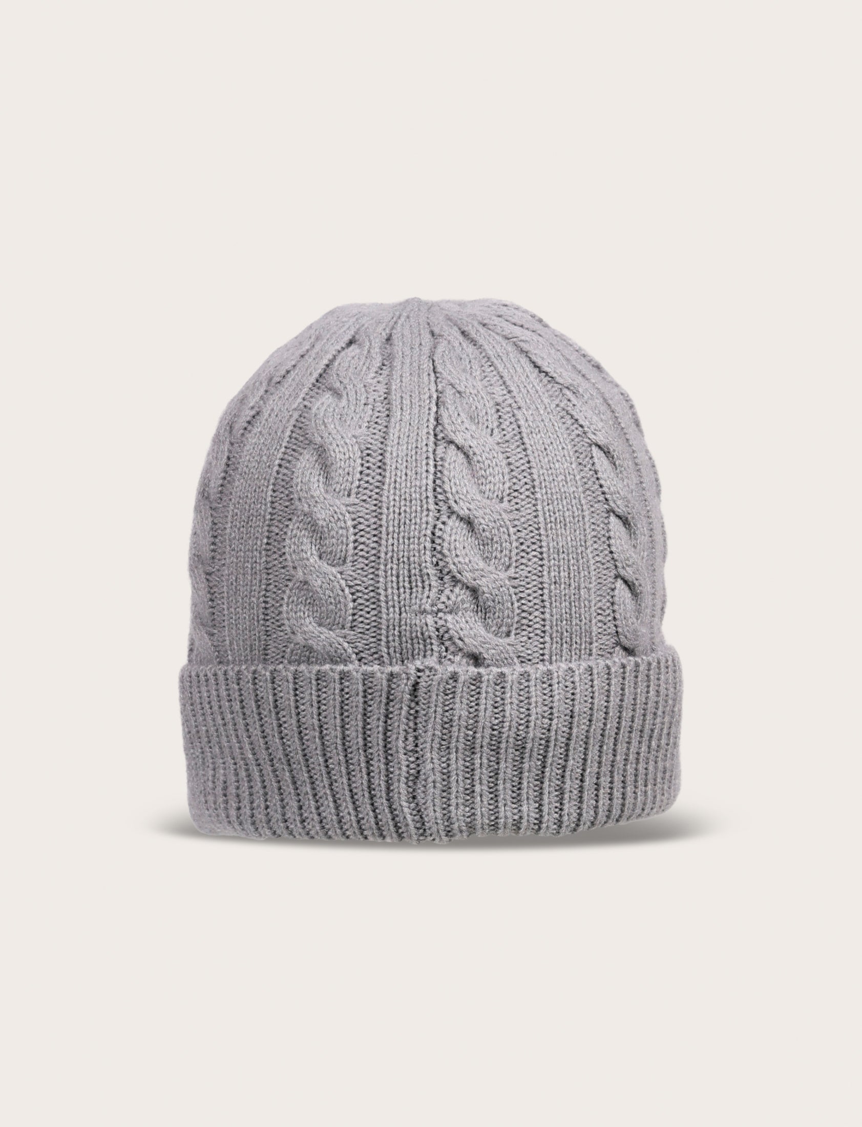 Cappello in maglia lavorata a trecce con morbido risvolto: caldo, confortevole e perfetto per aggiungere un tocco di stile ai look invernali.