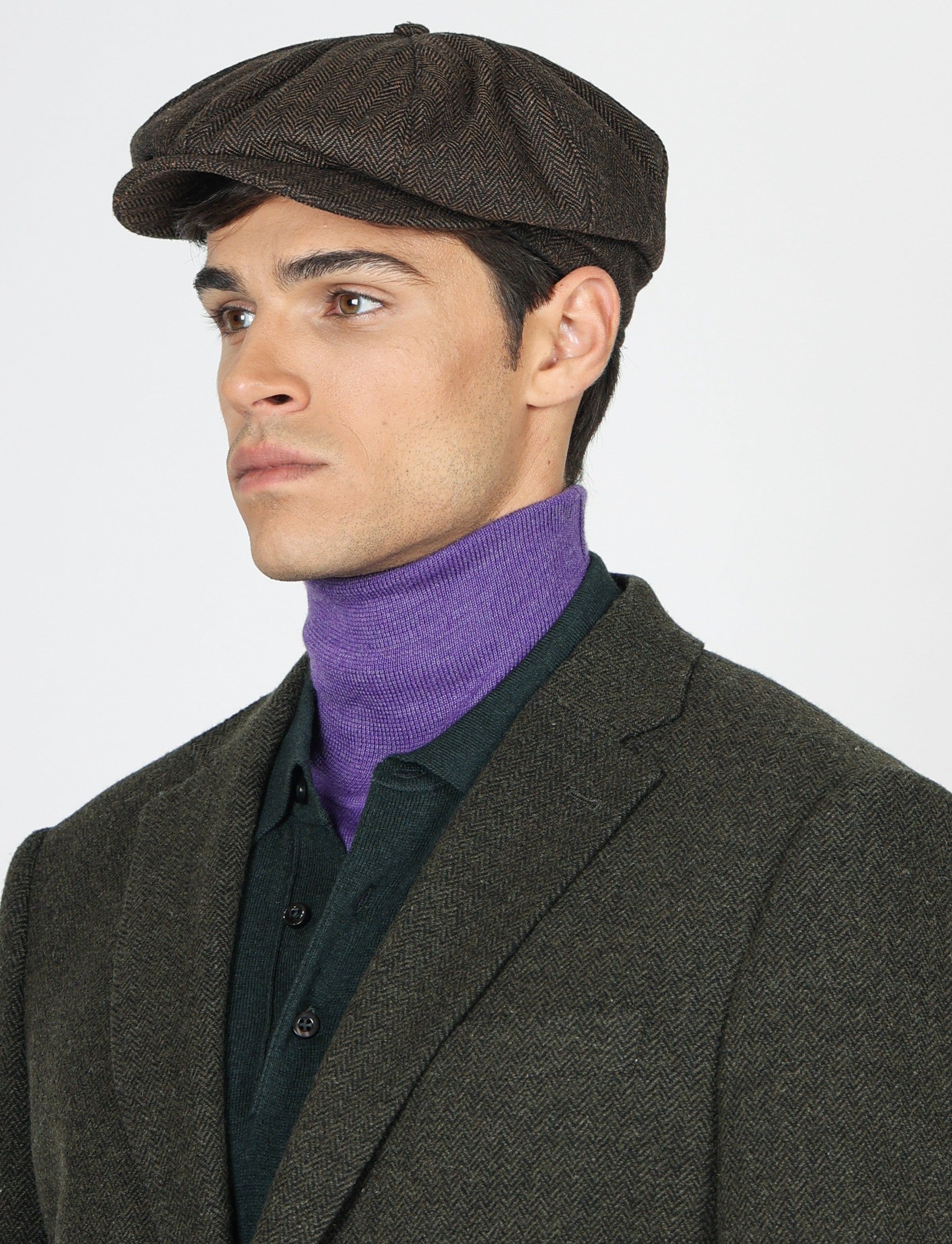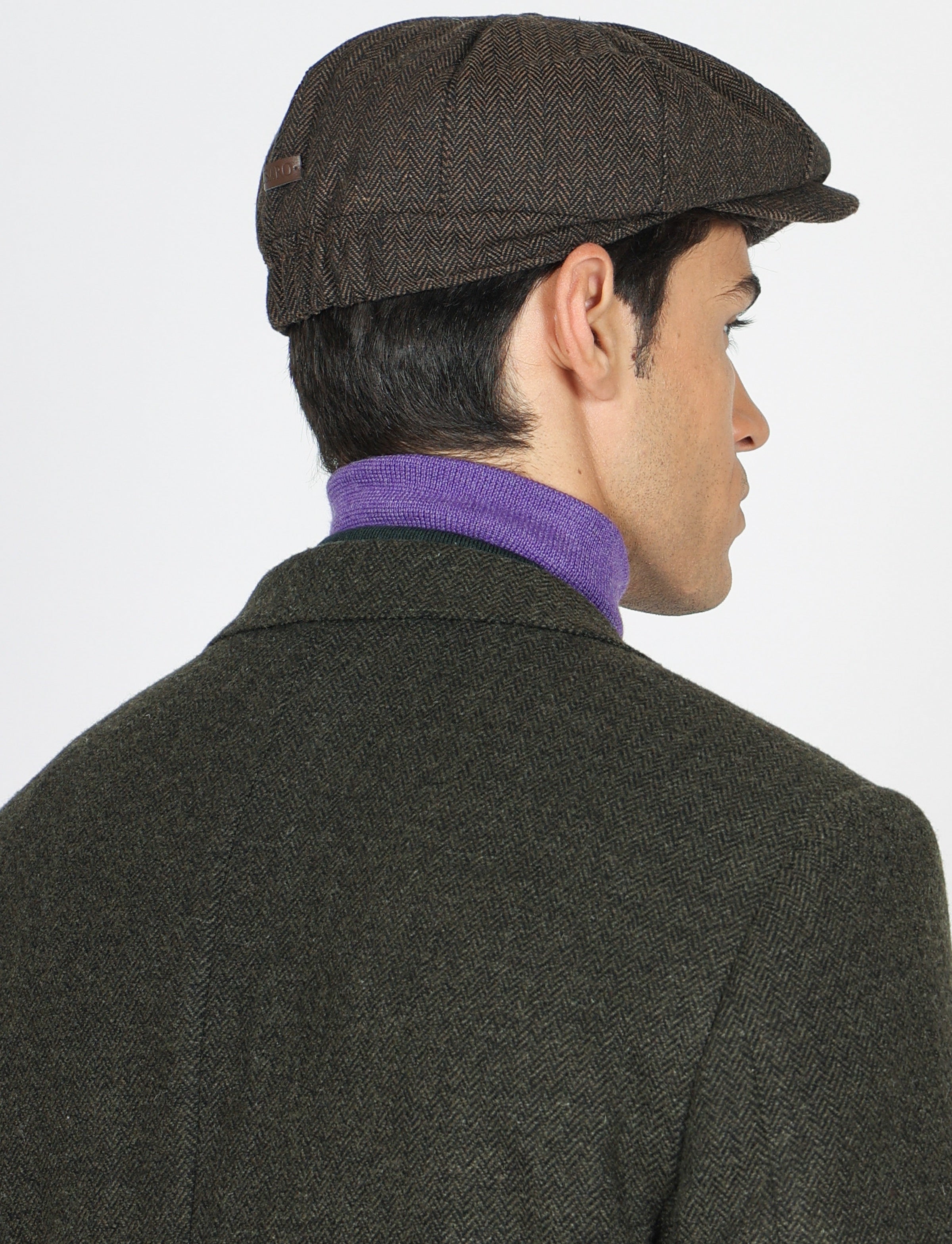 Basco in fantasia spigata, un accessorio intramontabile che unisce stile e funzionalità. Realizzato in tessuto caldo e strutturato, è foderato internamente per garantire comfort e protezione durante la stagione fredda. Il suo design raffinato si distingue per la linea morbida e la fascia elastica posteriore che assicura una calzata perfetta e adattabile.