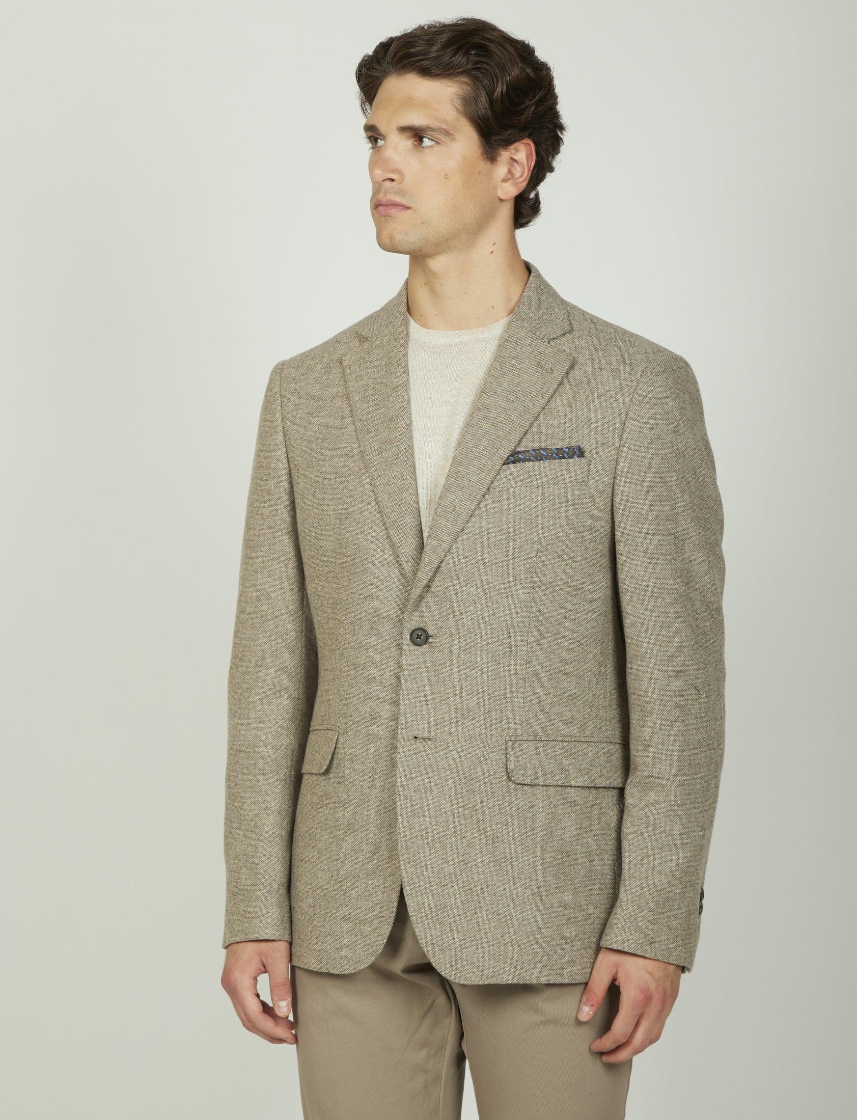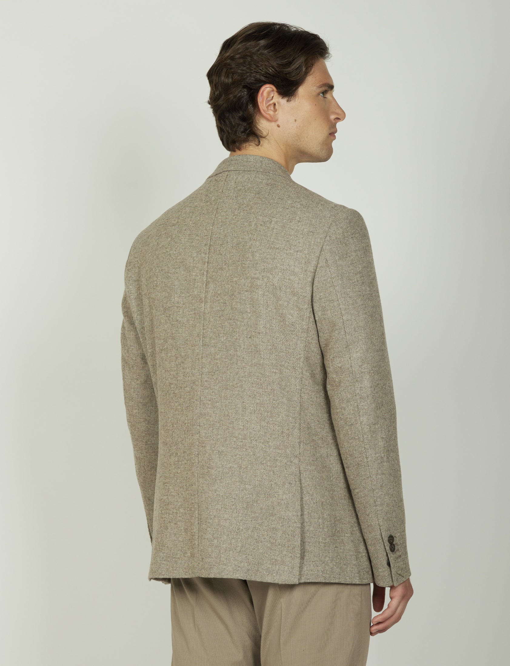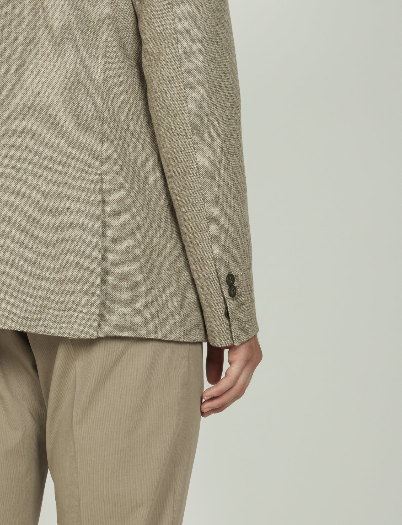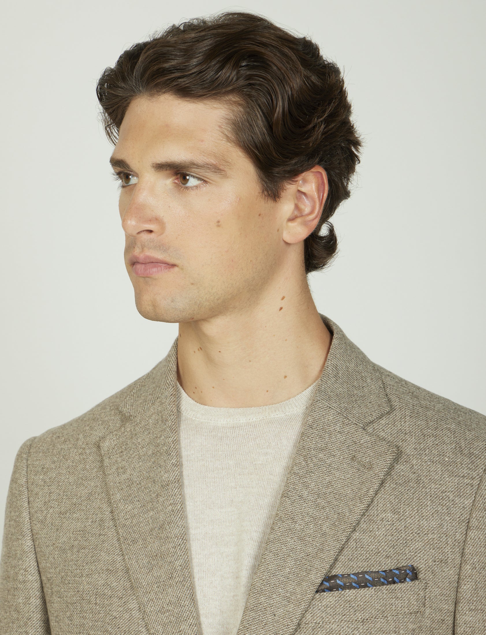 Una giacca dal fascino contemporaneo, realizzata in tessuto dobby melange con lana che dona profondità e carattere al look. La vestibilità Drop 6 garantisce una linea regolare ed equilibrata, ideale per outfit formali e smart casual.