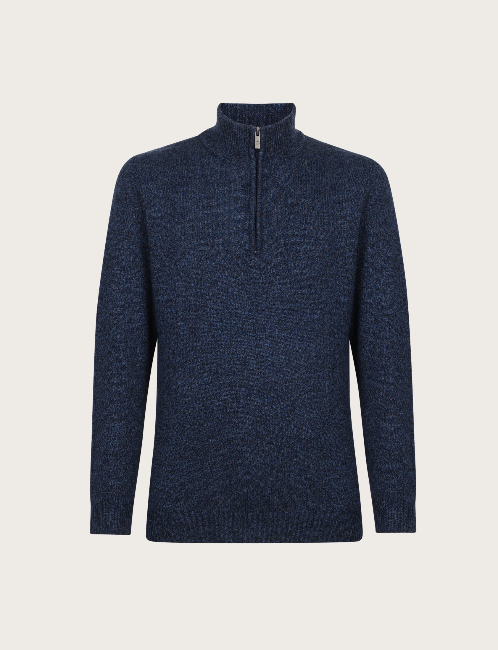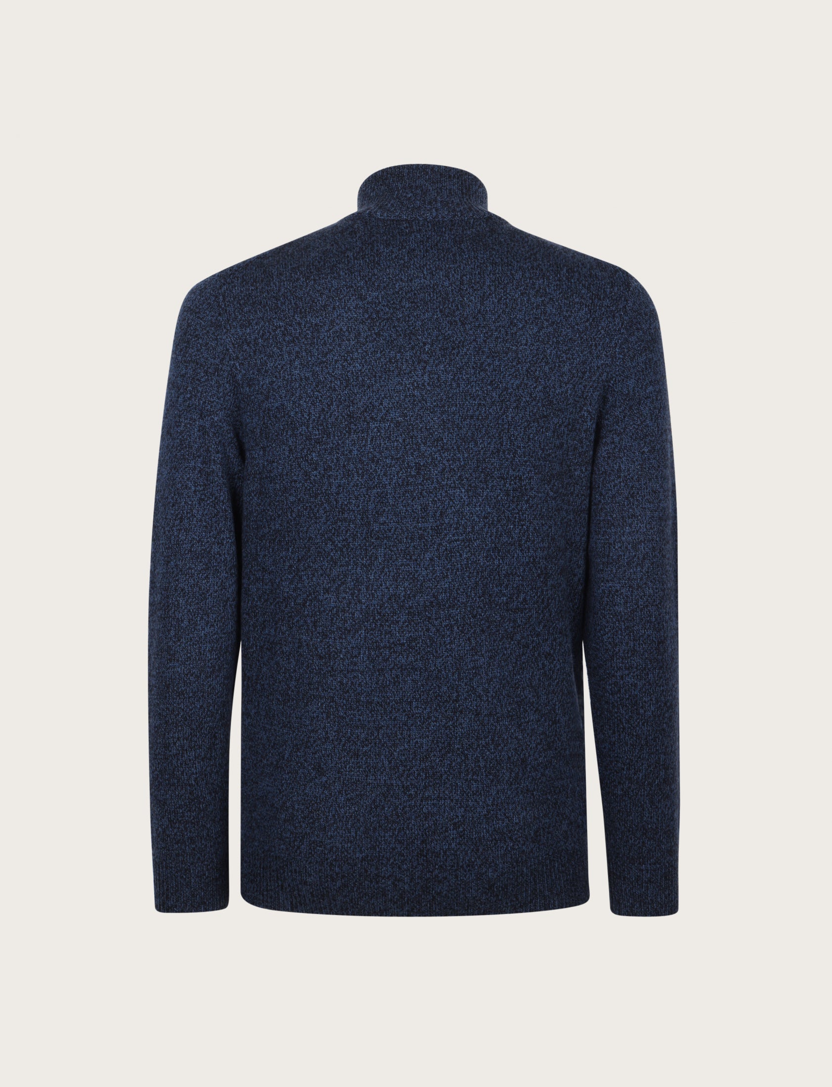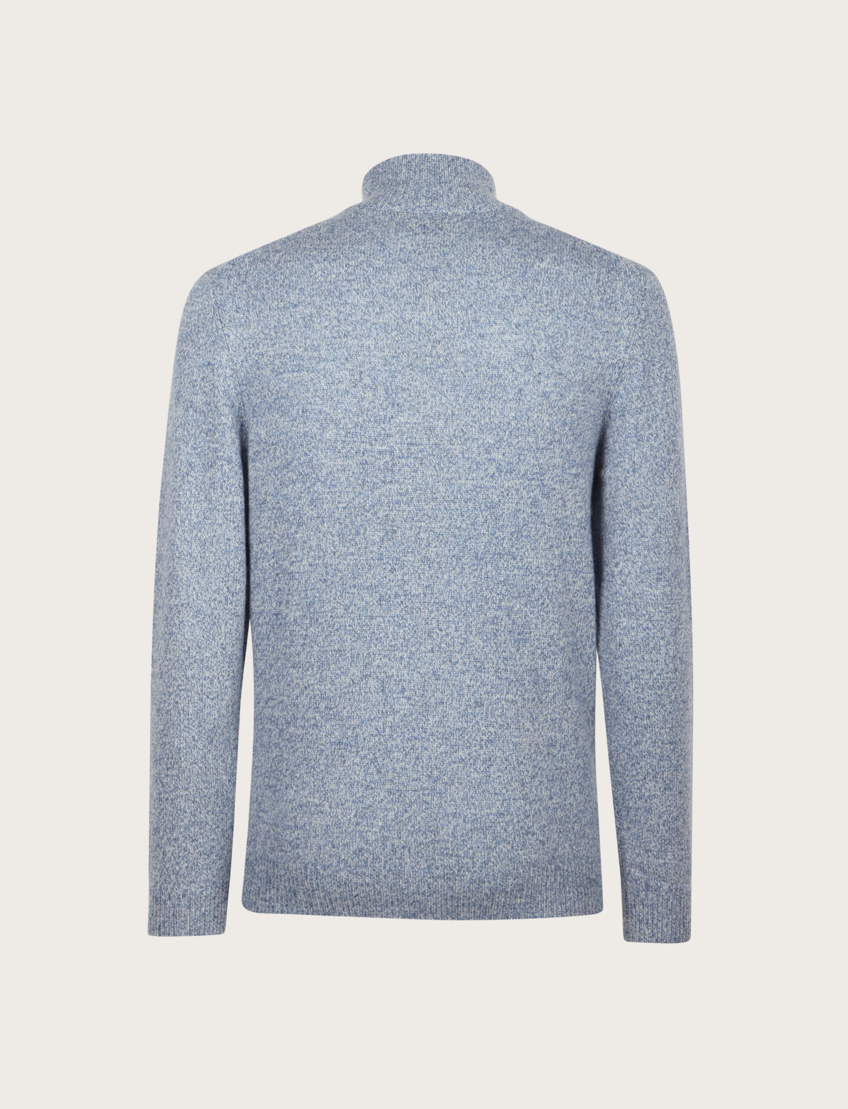 Maglia uomo a mezza zip dal design essenziale ed elegante, realizzata in lambswool mouliné, un filato pregiato che unisce più tonalità di colore per un effetto leggermente mosso e sofisticato.