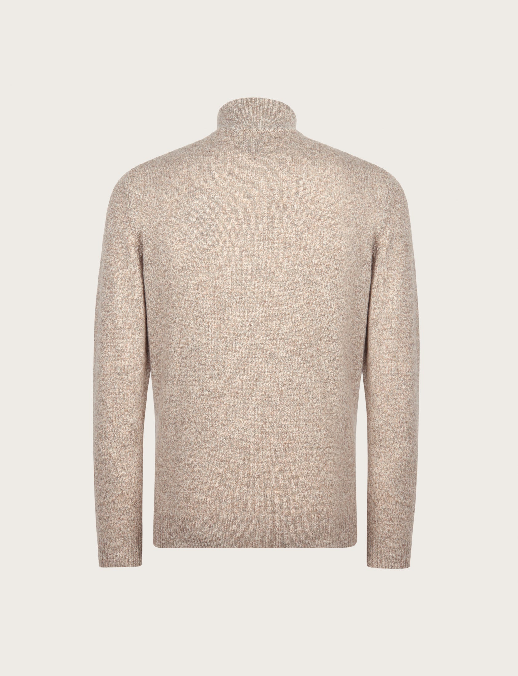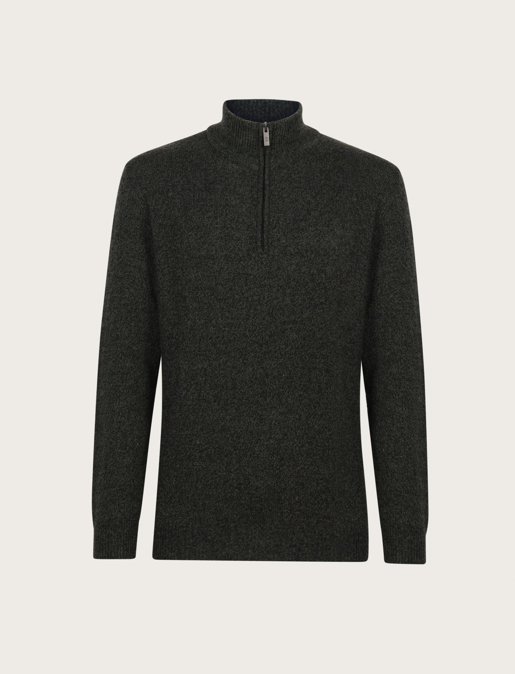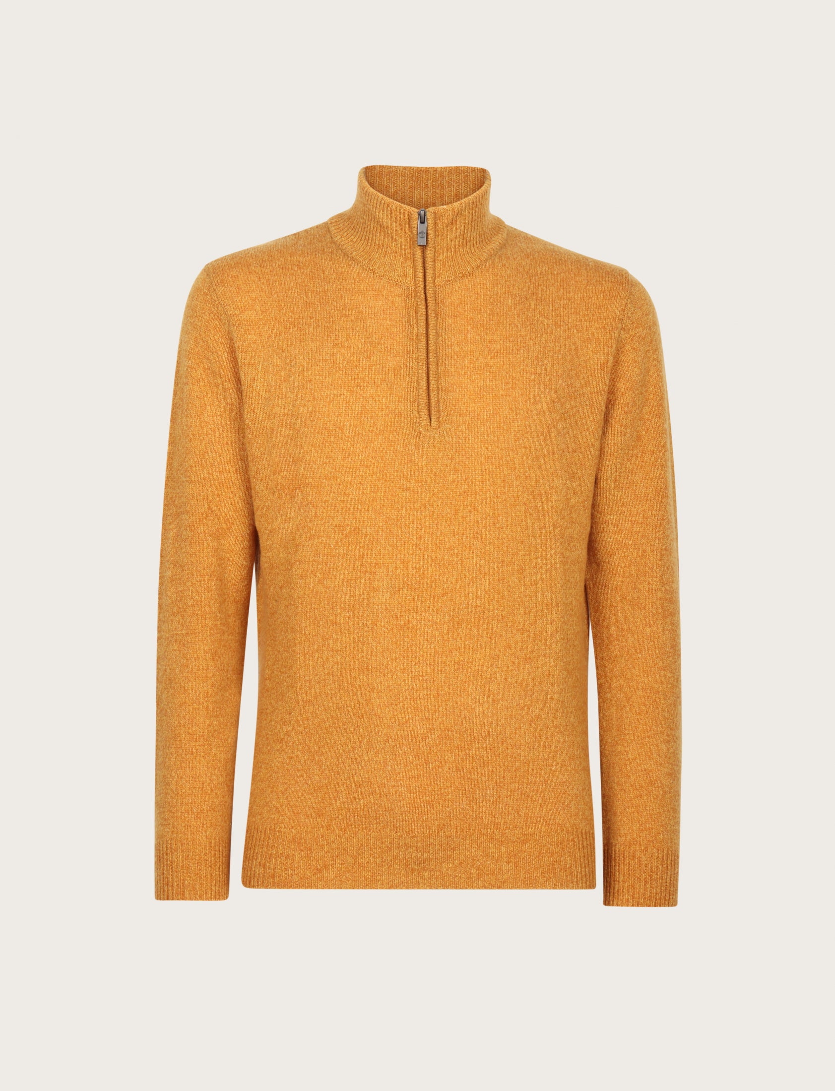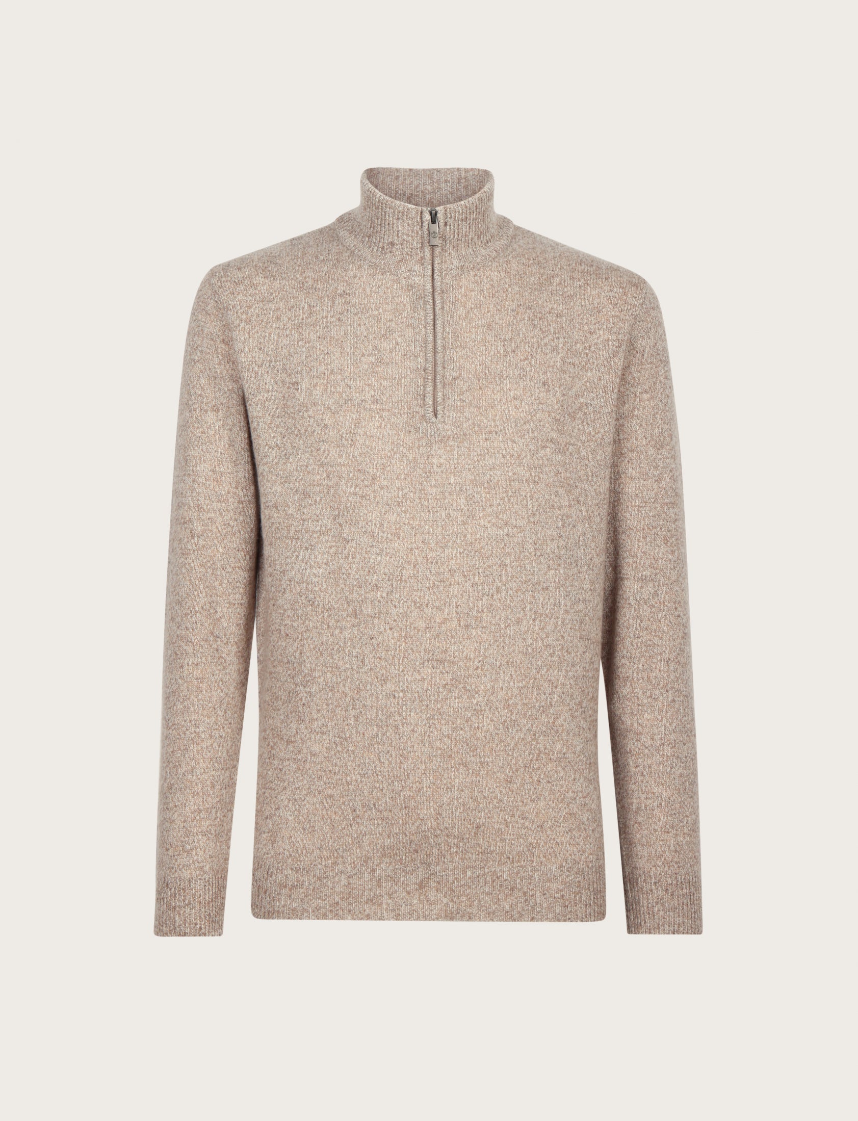 Maglia uomo a mezza zip dal design essenziale ed elegante, realizzata in lambswool mouliné, un filato pregiato che unisce più tonalità di colore per un effetto leggermente mosso e sofisticato.