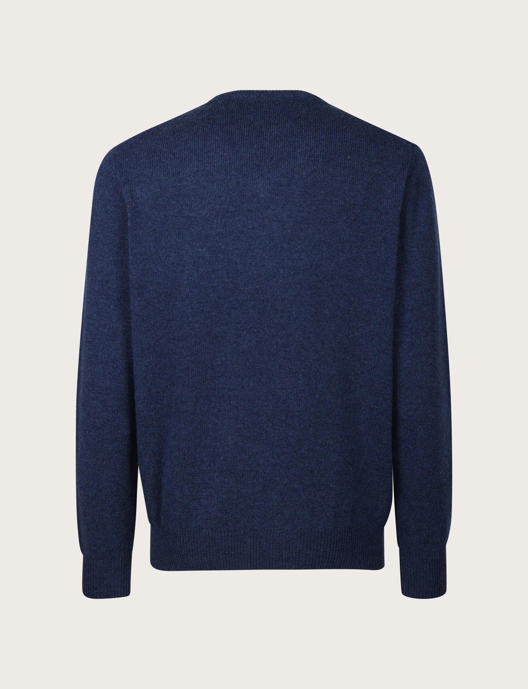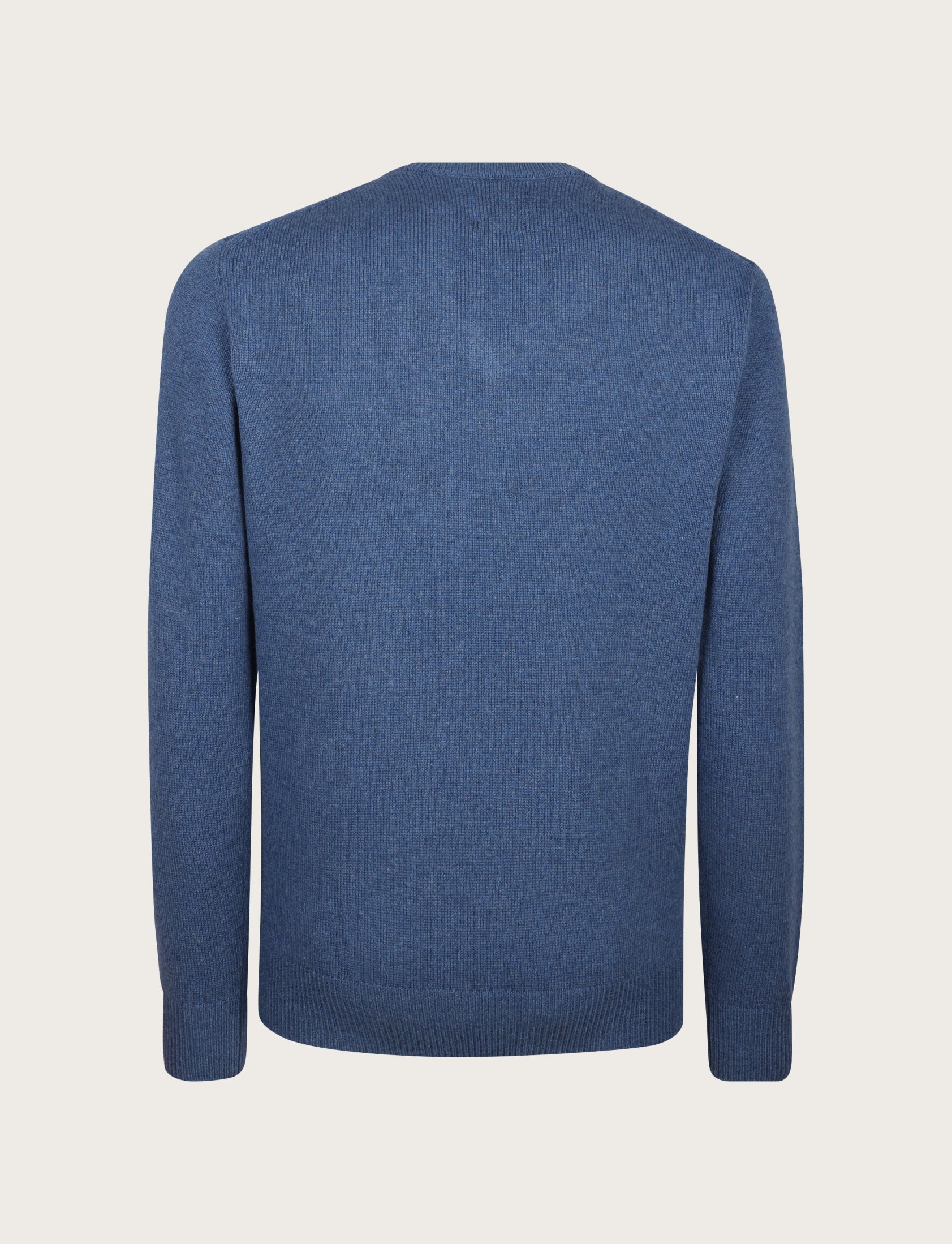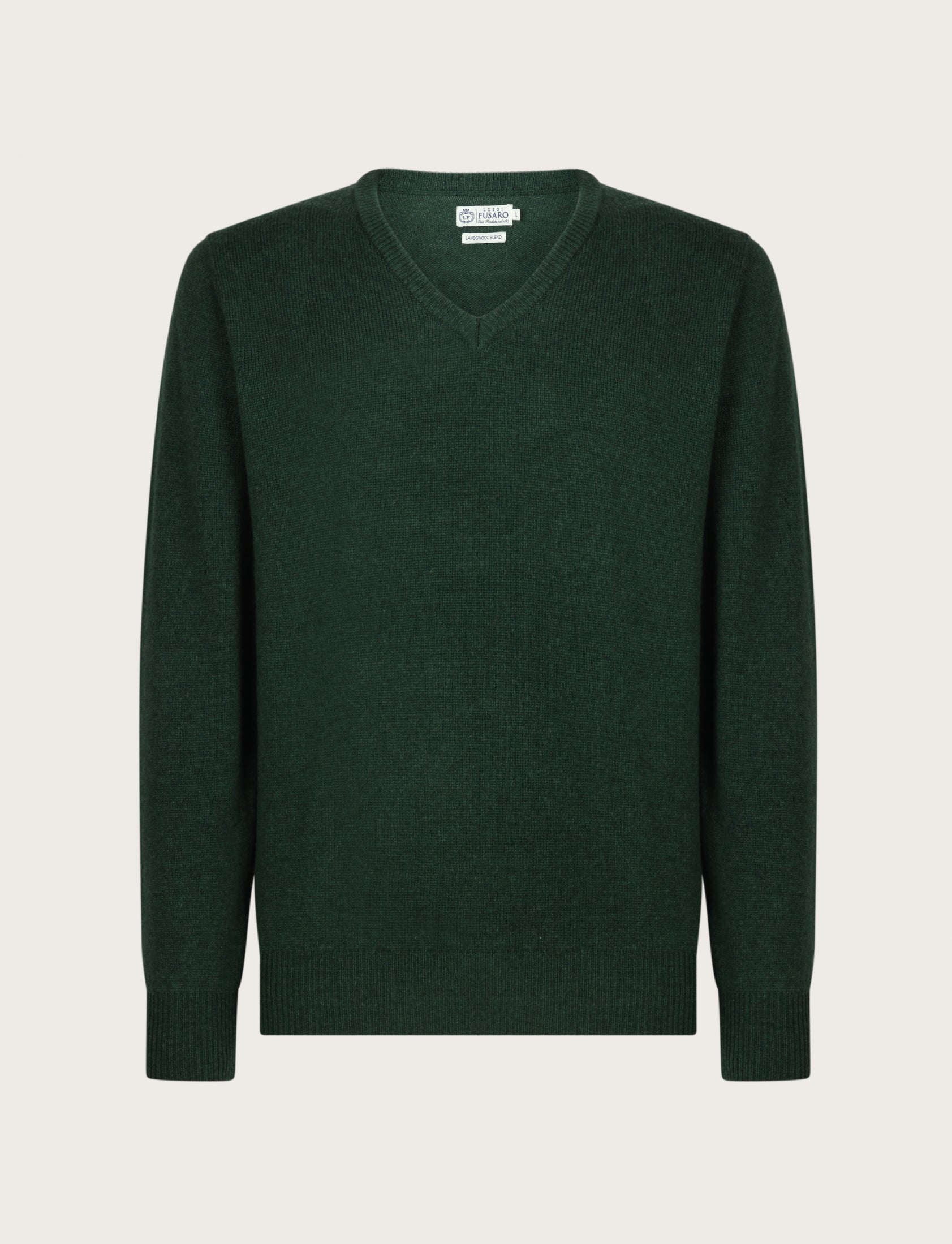 Maglia a scollo a V realizzata in pregiata lana Lambswool, scelta per la sua mano morbida, la leggerezza al tatto e l’elevata capacità termica.