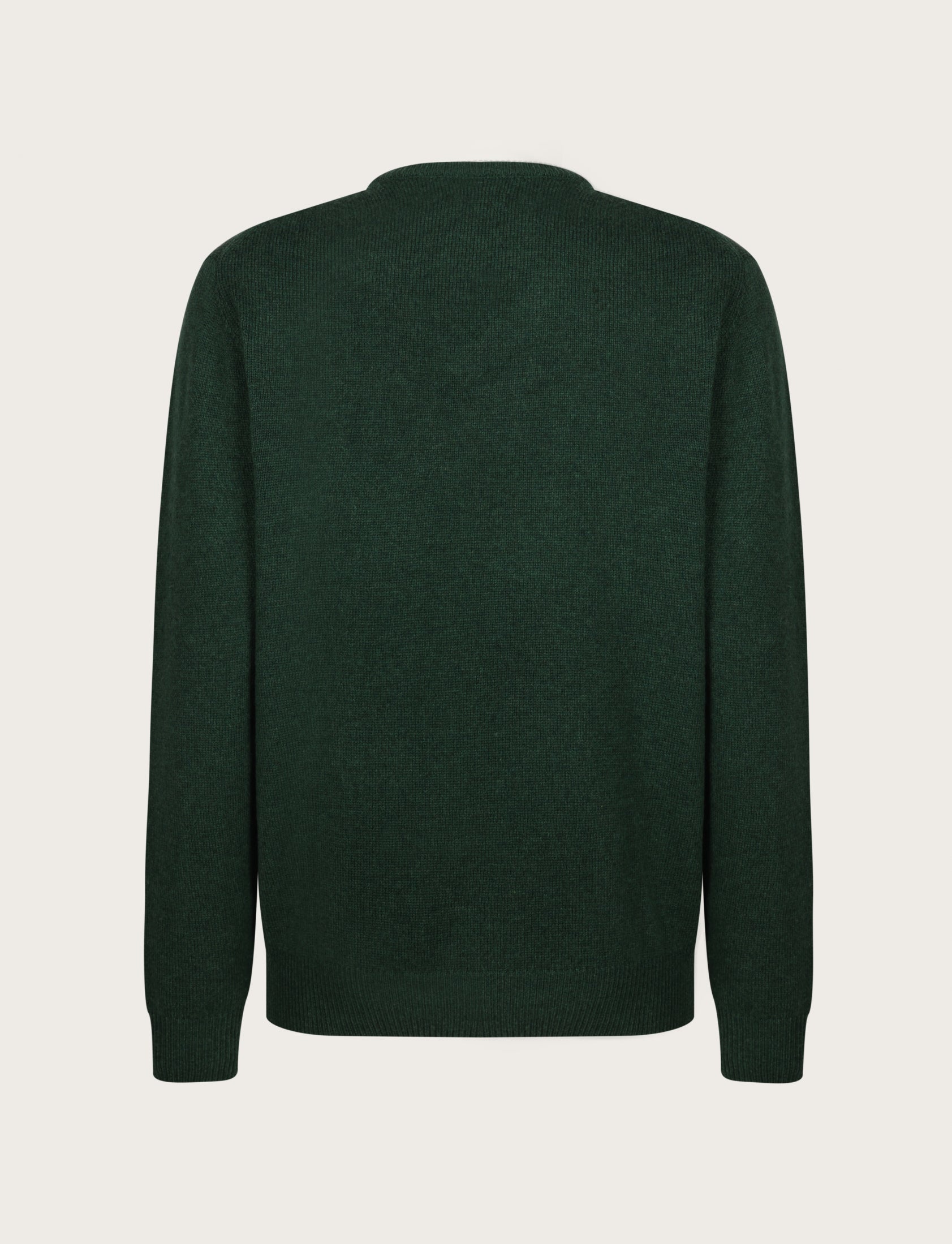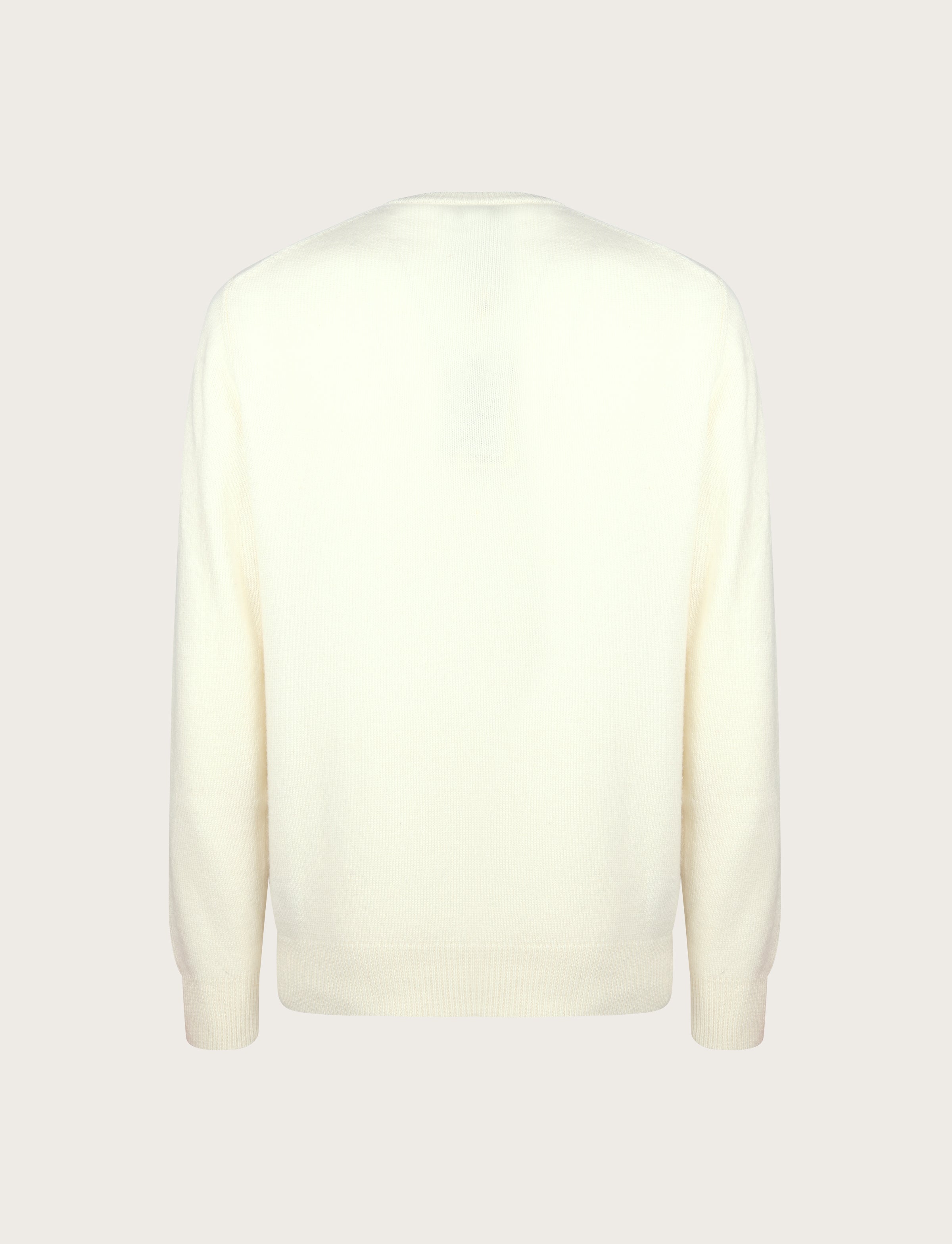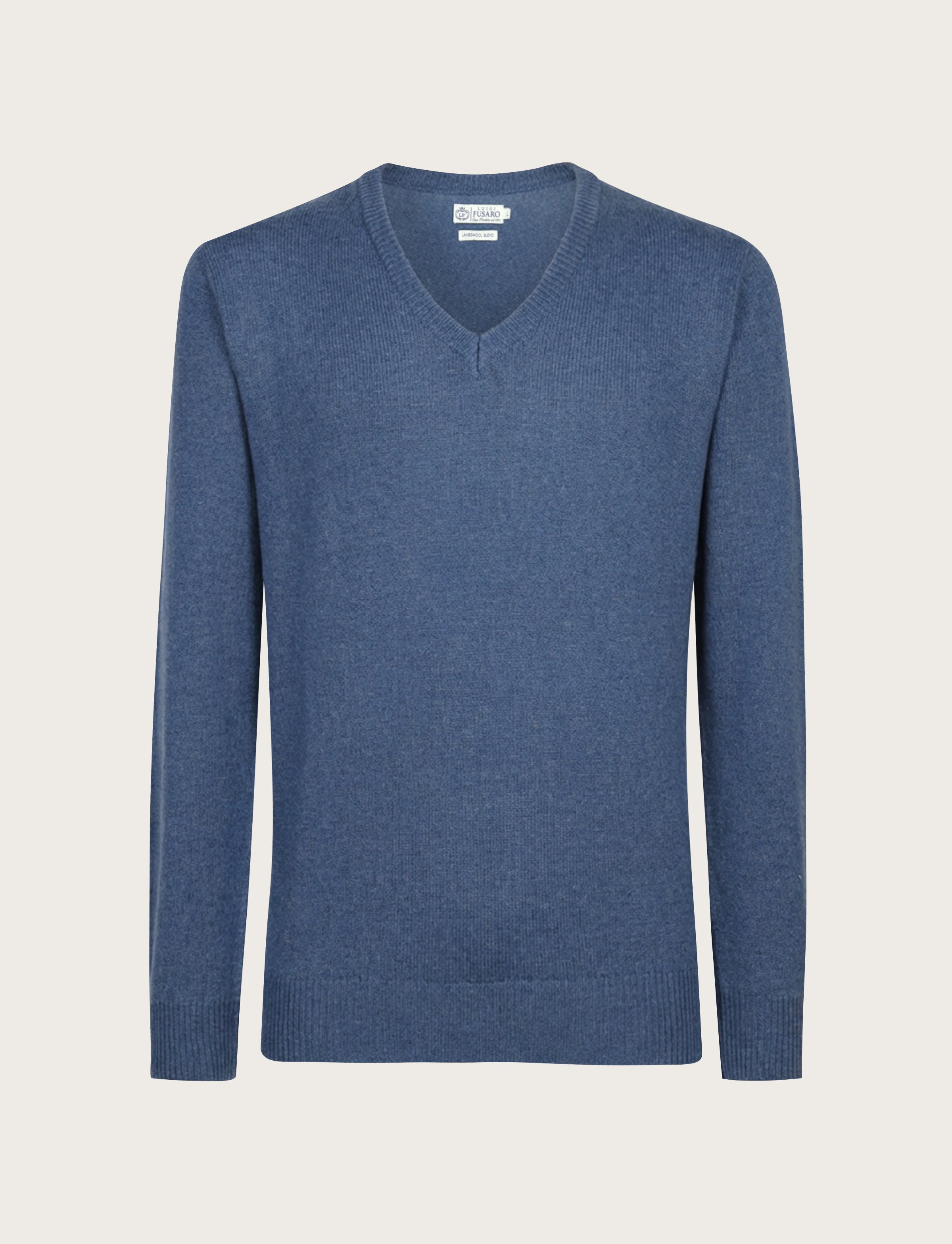 Maglia a scollo a V realizzata in pregiata lana Lambswool, scelta per la sua mano morbida, la leggerezza al tatto e l’elevata capacità termica.