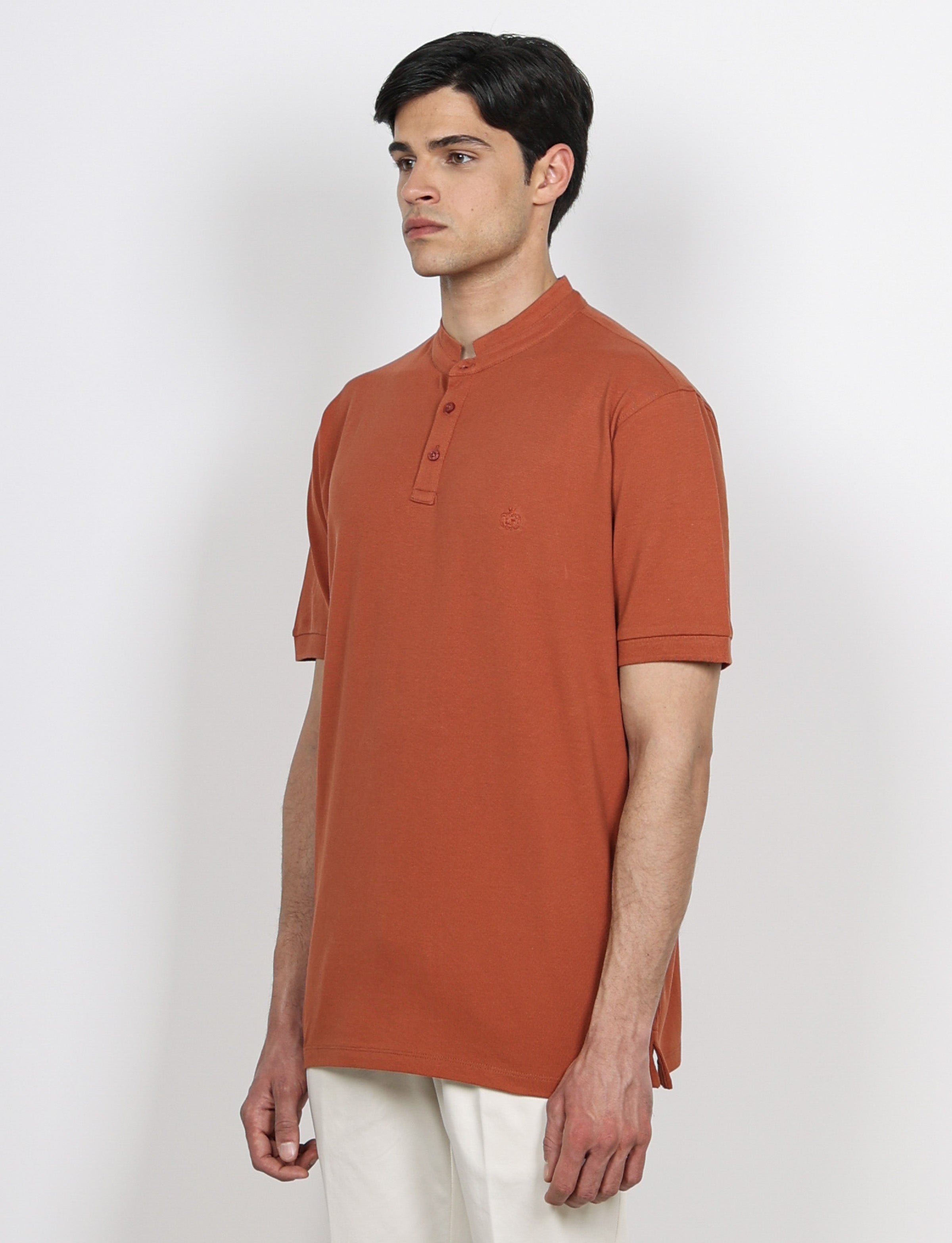 The mandarin collar polo is an essential piece for every man's wardrobe. Crafted from high-quality materials, this polo offers the perfect blend of comfort and style. The minimalist design with a touch of modernity makes this polo suitable for any occasion, whether casual or formal. Paired with jeans for a casual look or with elegant trousers for a formal occasion, this polo will never make you look out of place.