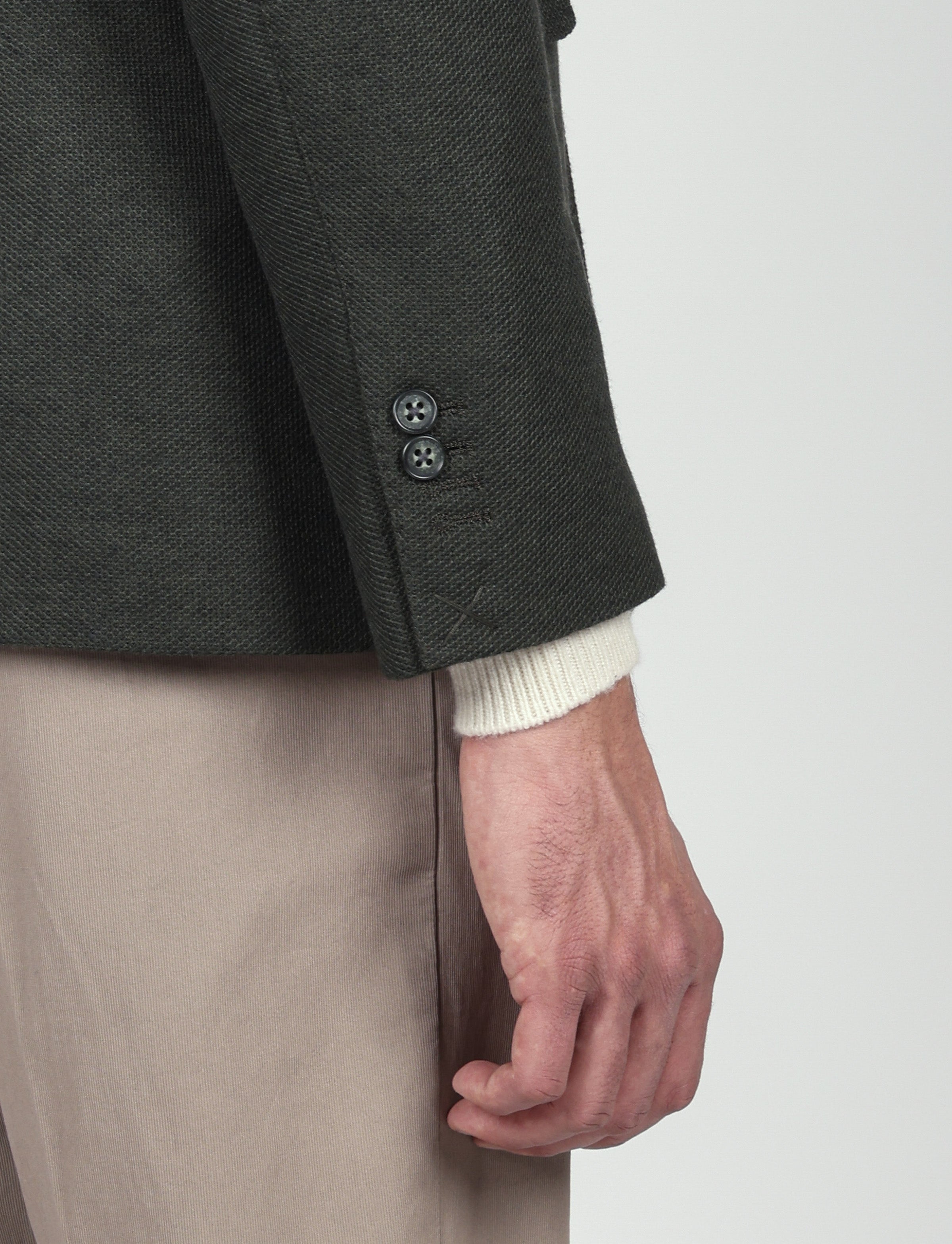 Polsini: quattro bottoni al fondo manica (due asole aperte e due chiuse)