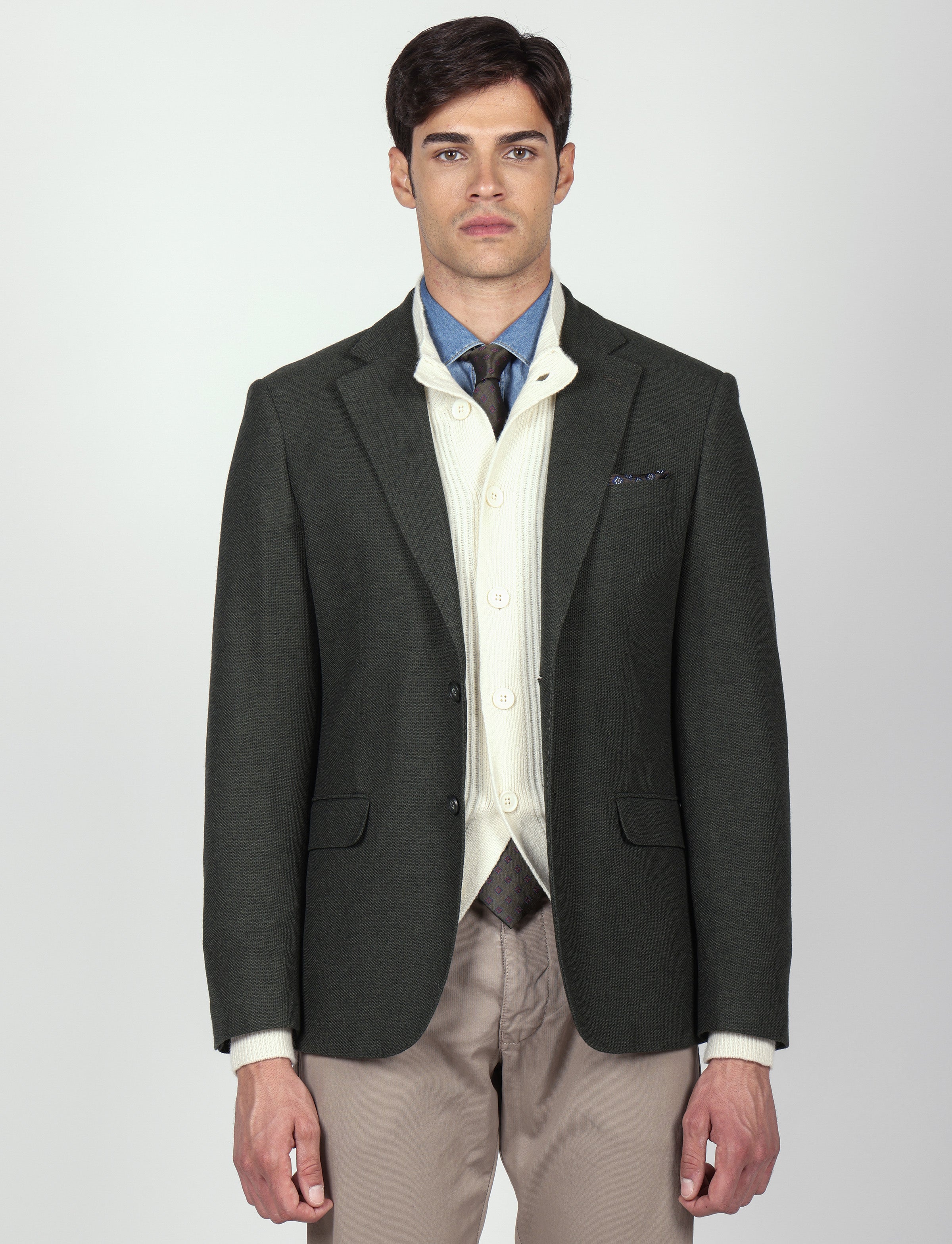 Ideale per look formali o business casual, può essere abbinata a camicia e pantalone in lana o cotone.
