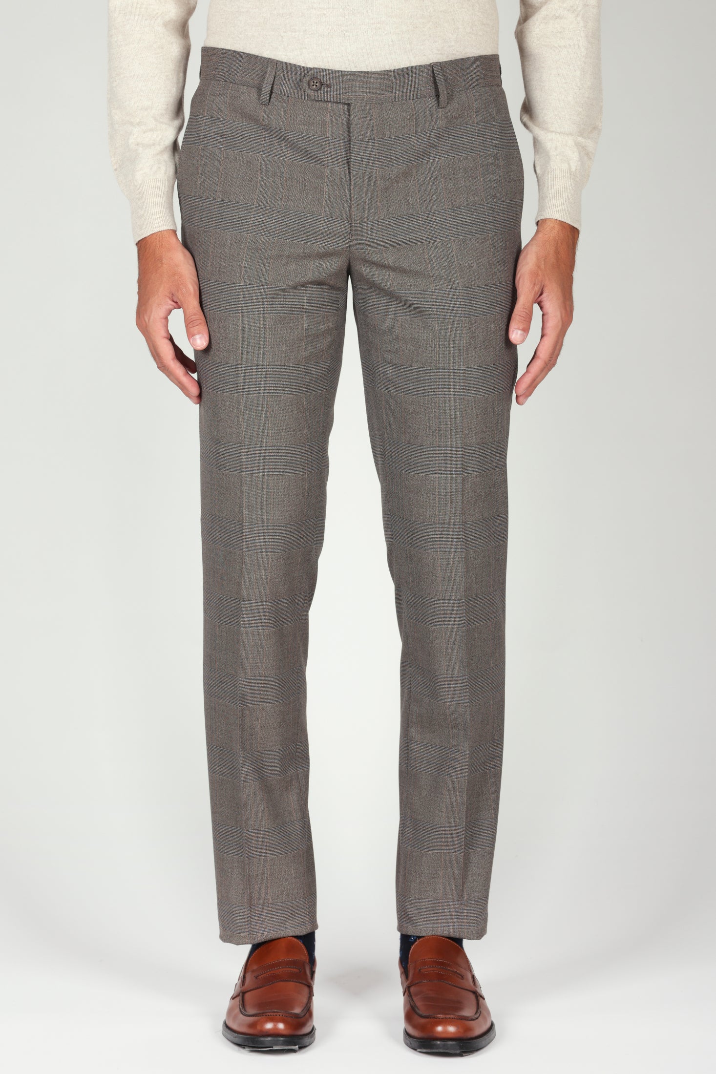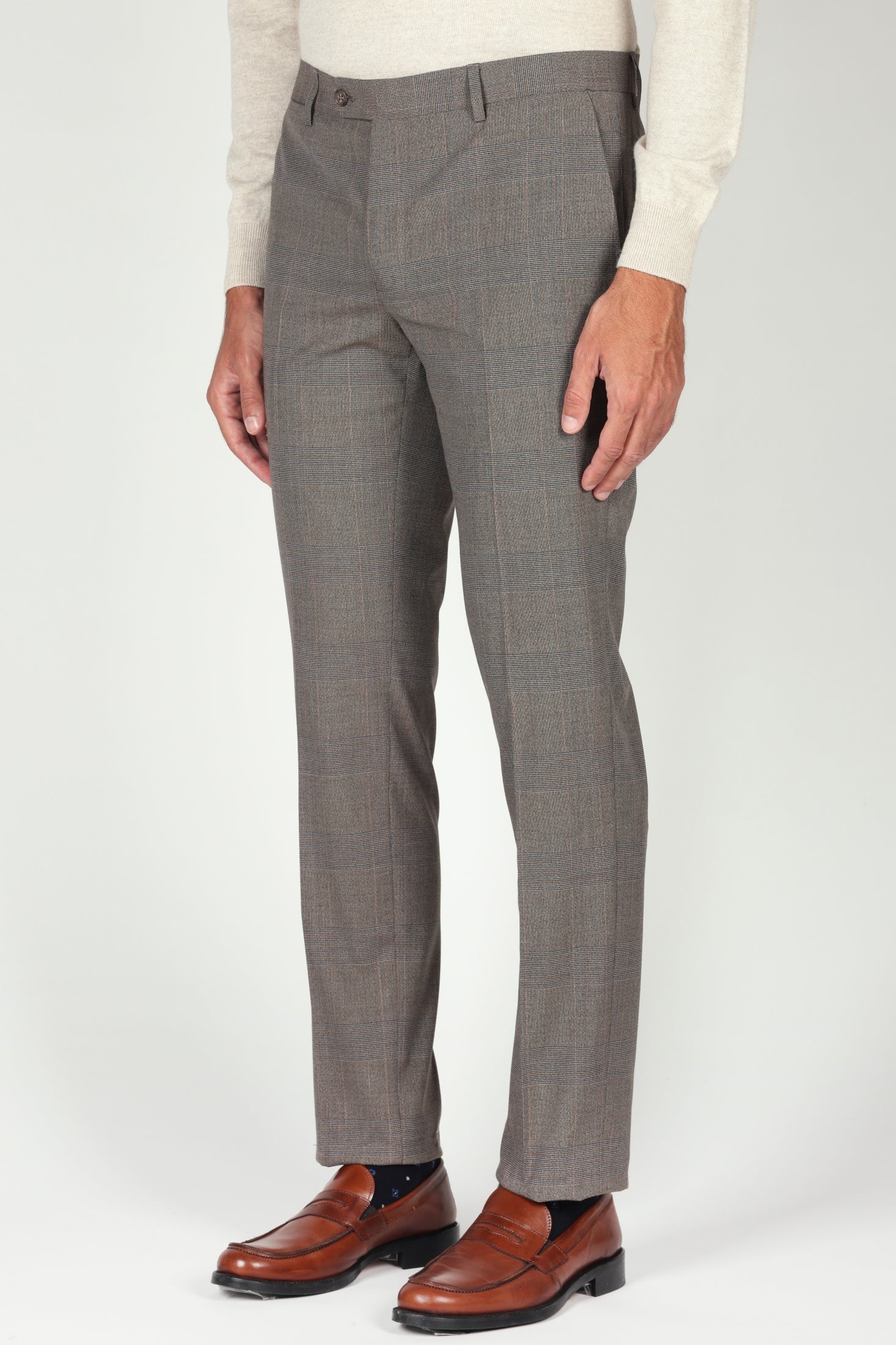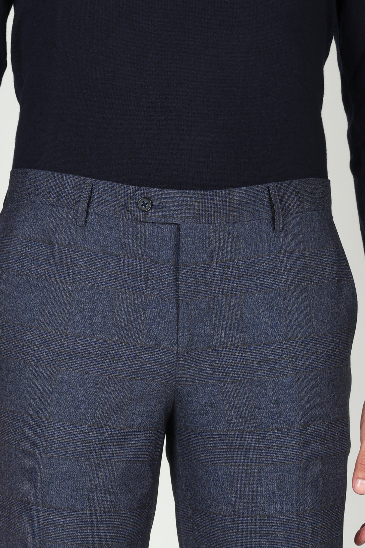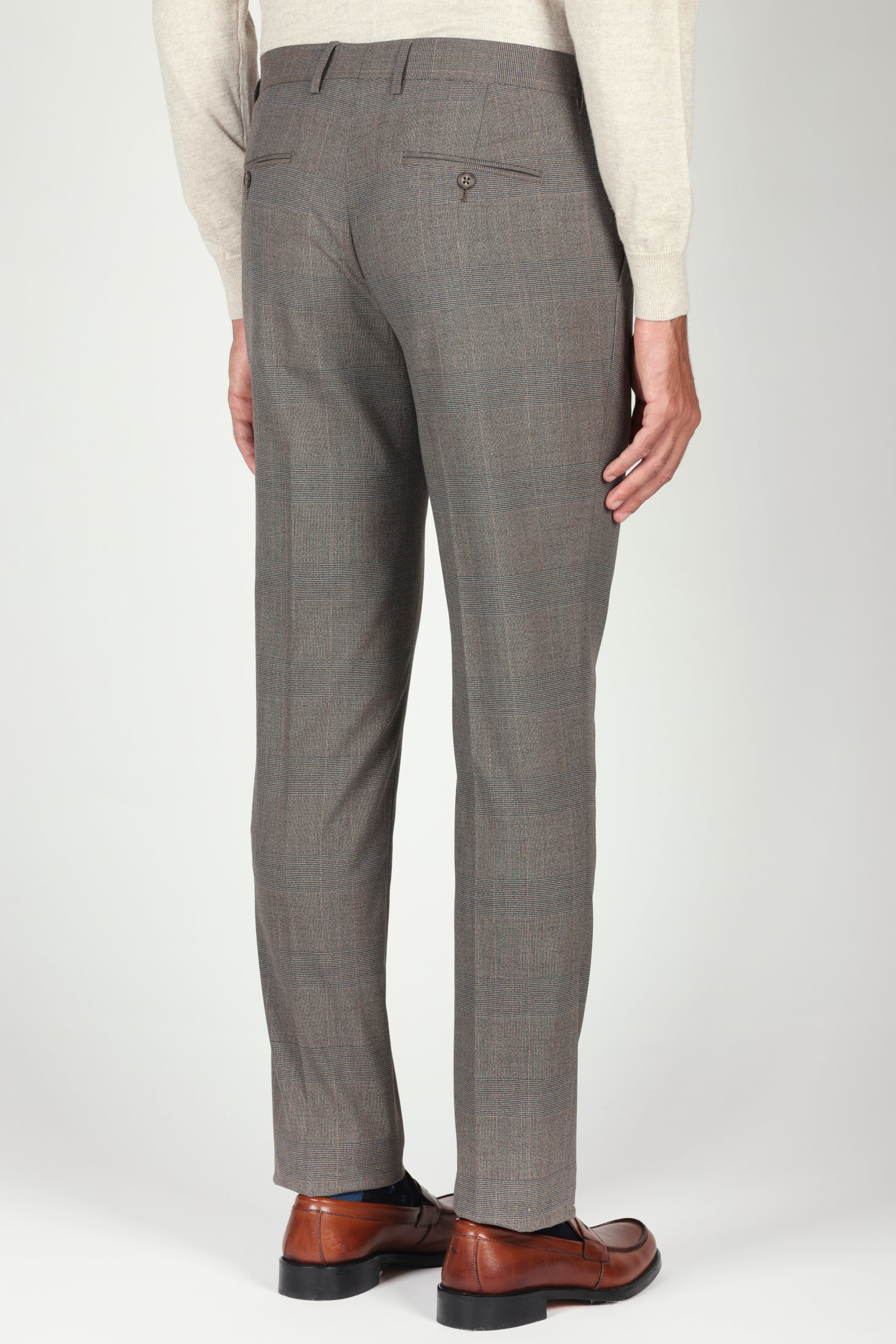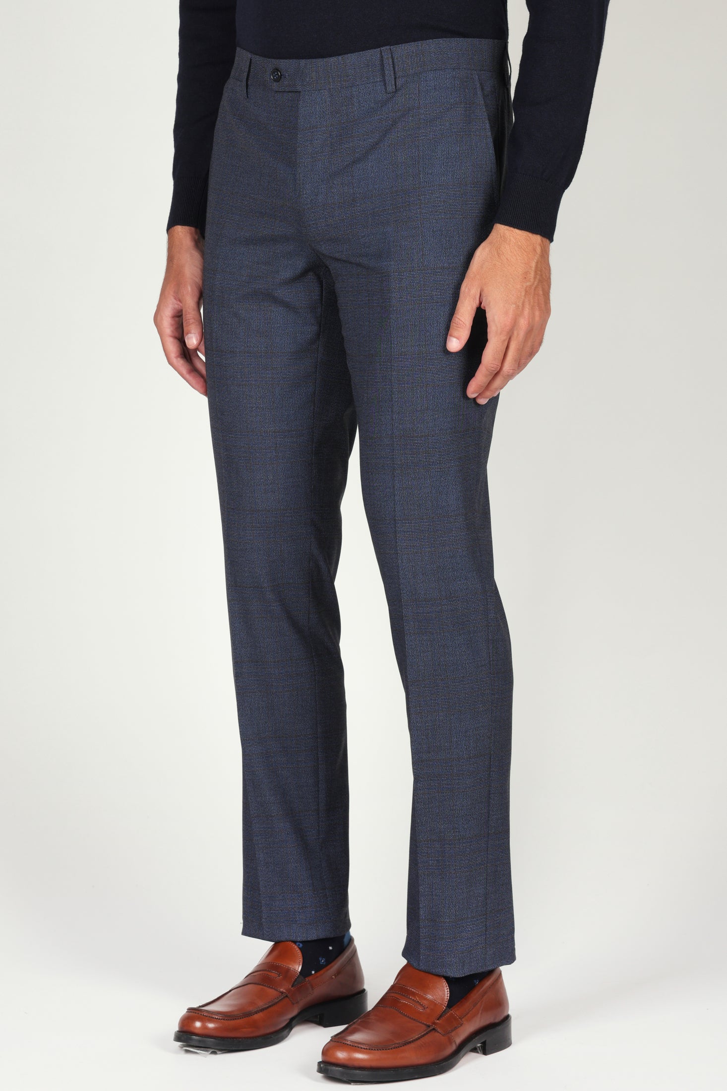 Pantalone in fantasia Principe di Galles dal taglio regolare e dallo stile raffinato, ideale per un look contemporaneo ma ricercato. Realizzato in un pregiato tessuto misto con lana, garantisce comfort, vestibilità e una caduta impeccabile.