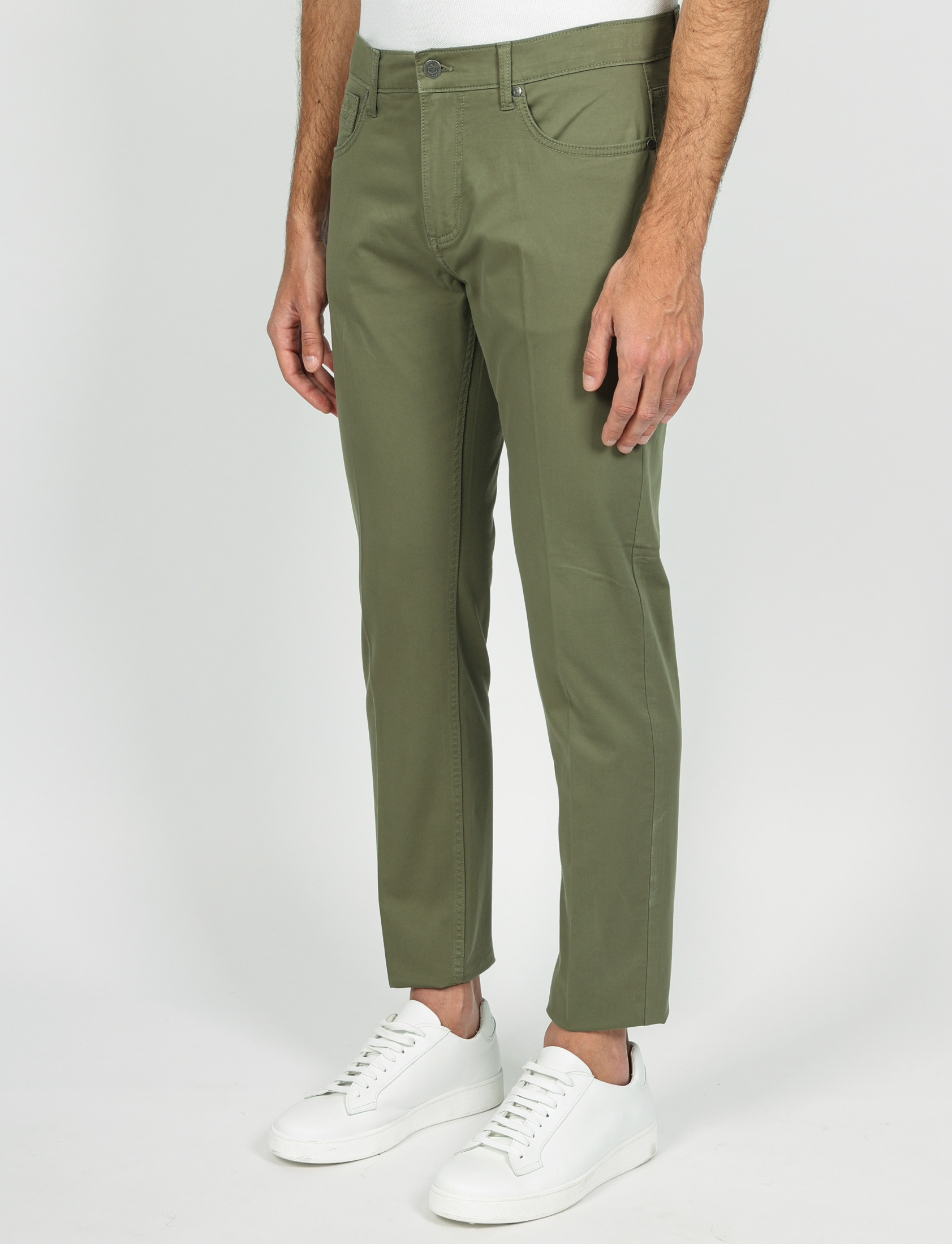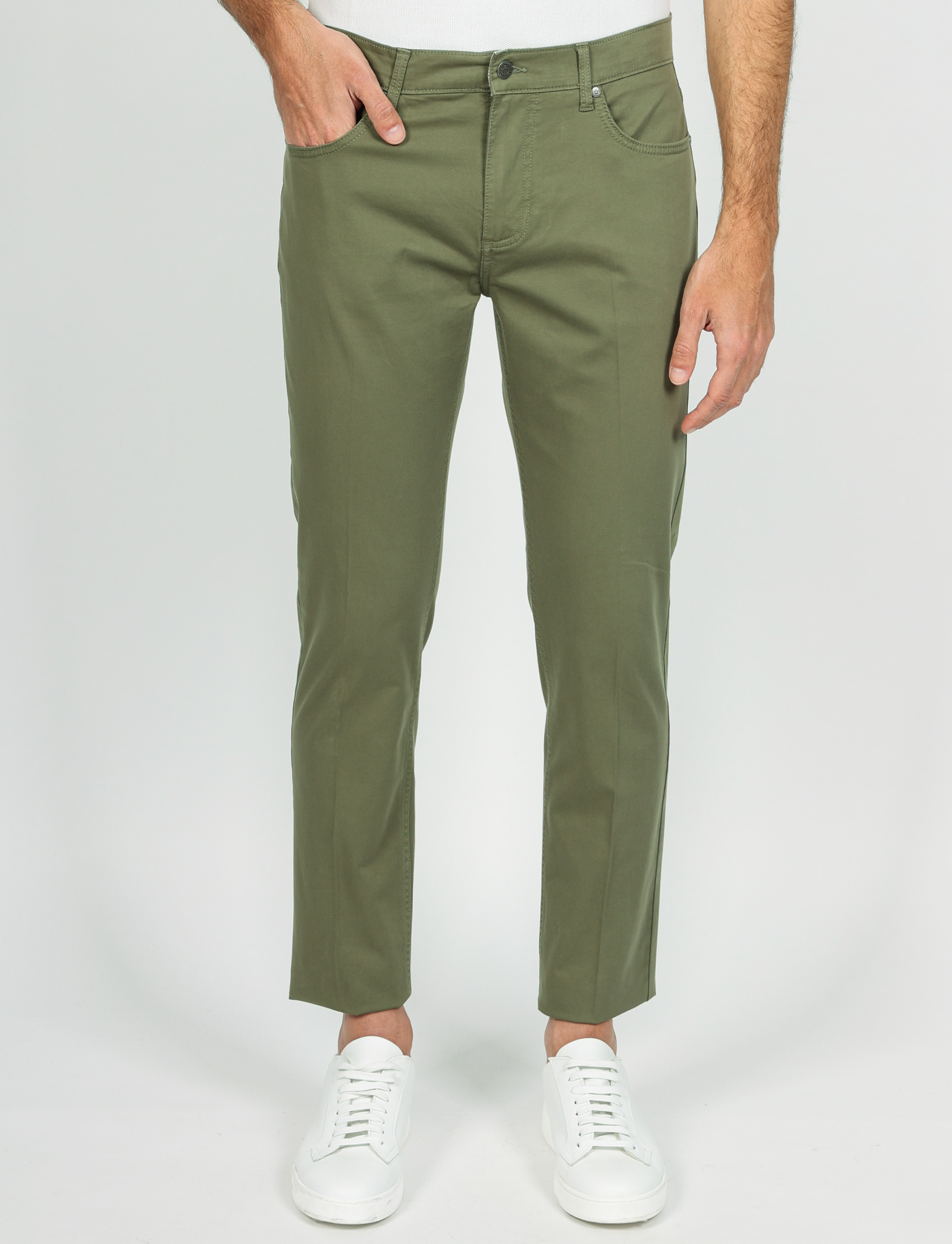 Five-pocket trousers in stretch cotton satin fabric, perfect for a refined casual look. The smooth and soft fabric offers a comfortable fit, while the classic five-pocket design guarantees practicality and versatility. Ideal for any occasion, from free time to more refined outfits.