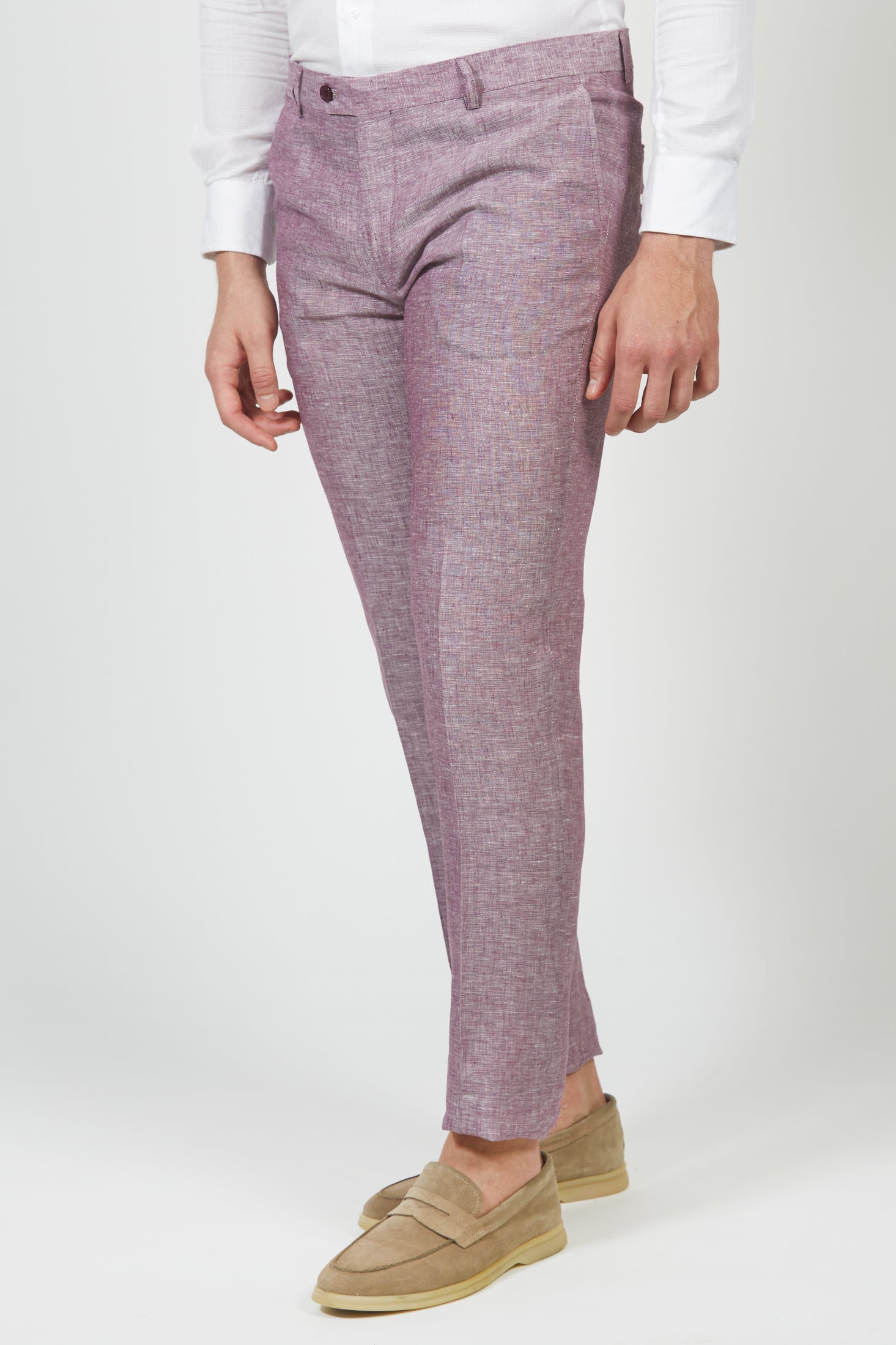 The mélange linen trousers are made from a high-quality linen blend, these trousers offer a light and fresh feel, perfect for warm seasons. The mélange fabric adds a touch of sophistication and versatility, making them ideal for both casual and formal occasions. Pair them with a coordinated linen shirt and a light jacket in the same colour (art.GC803L) or in a complementary shade to create an easy formal look perfect for the summer season.