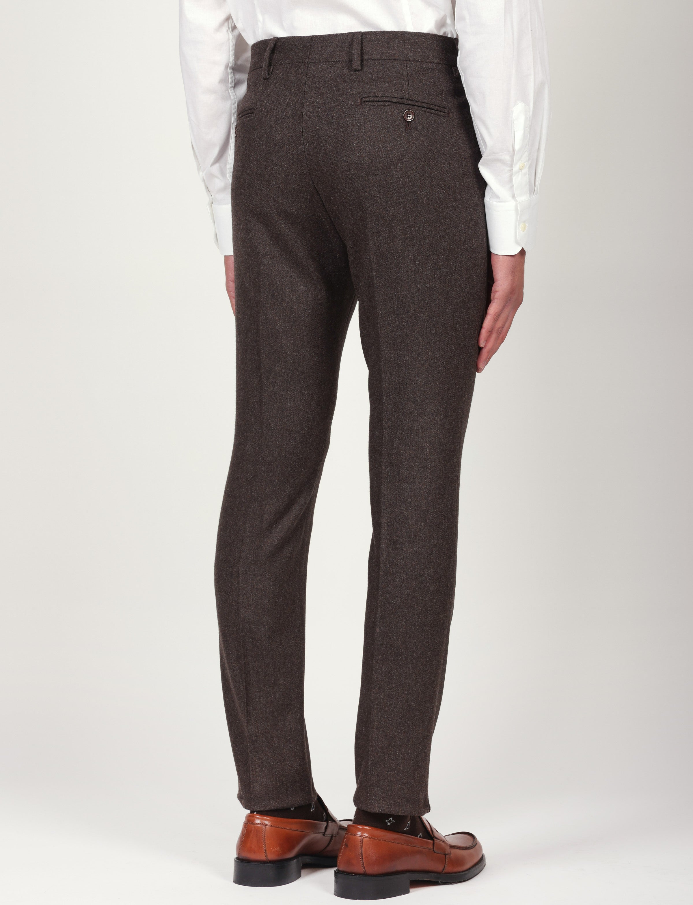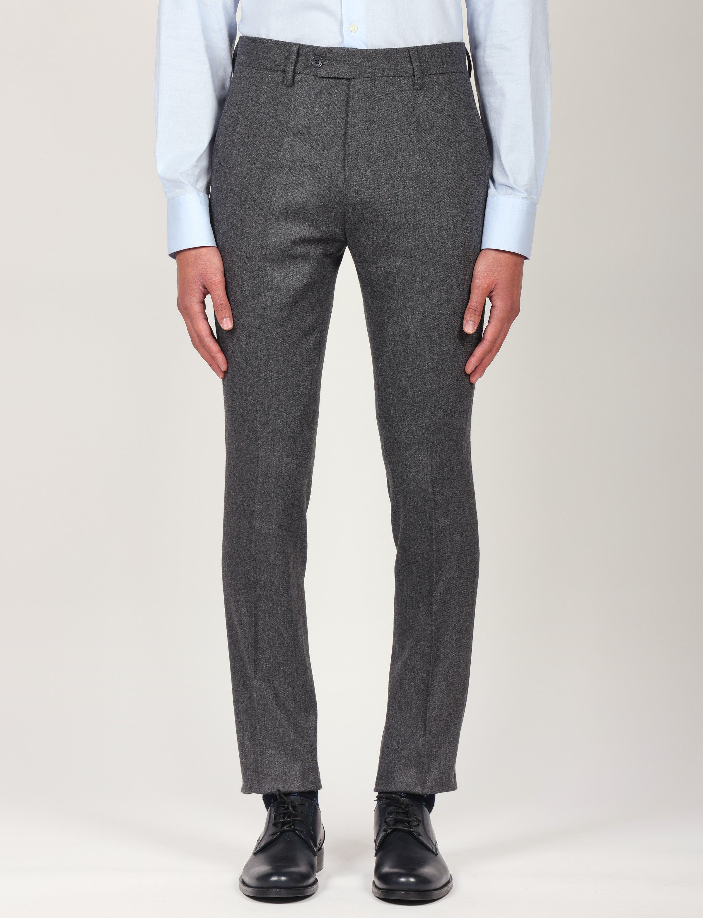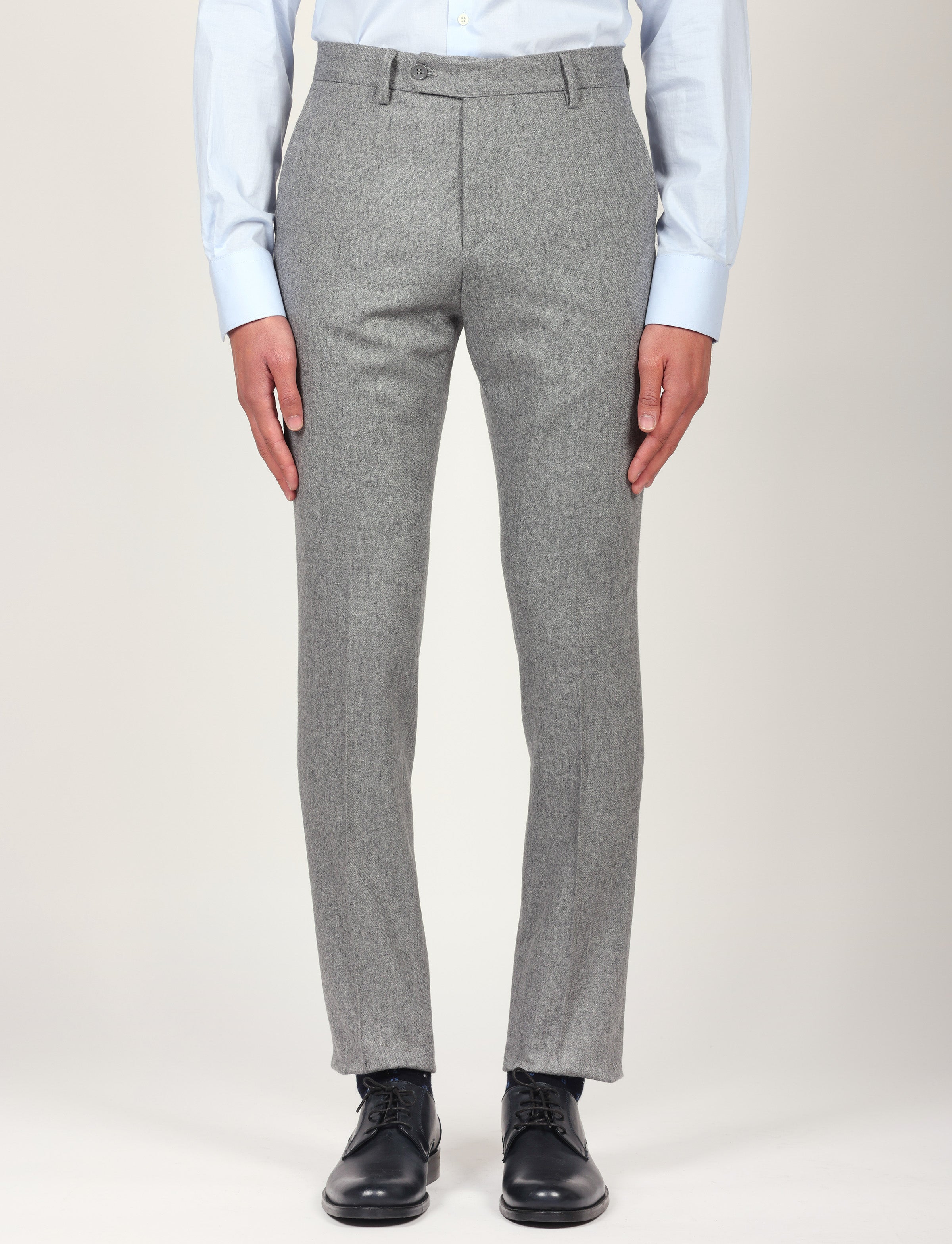 Pantalone in flanella, caldo ed elegante, realizzato con un mix di lana e poliestere per garantire comfort, resistenza e una vestibilità impeccabile. Ideale per outfit classici, business o smart casual.