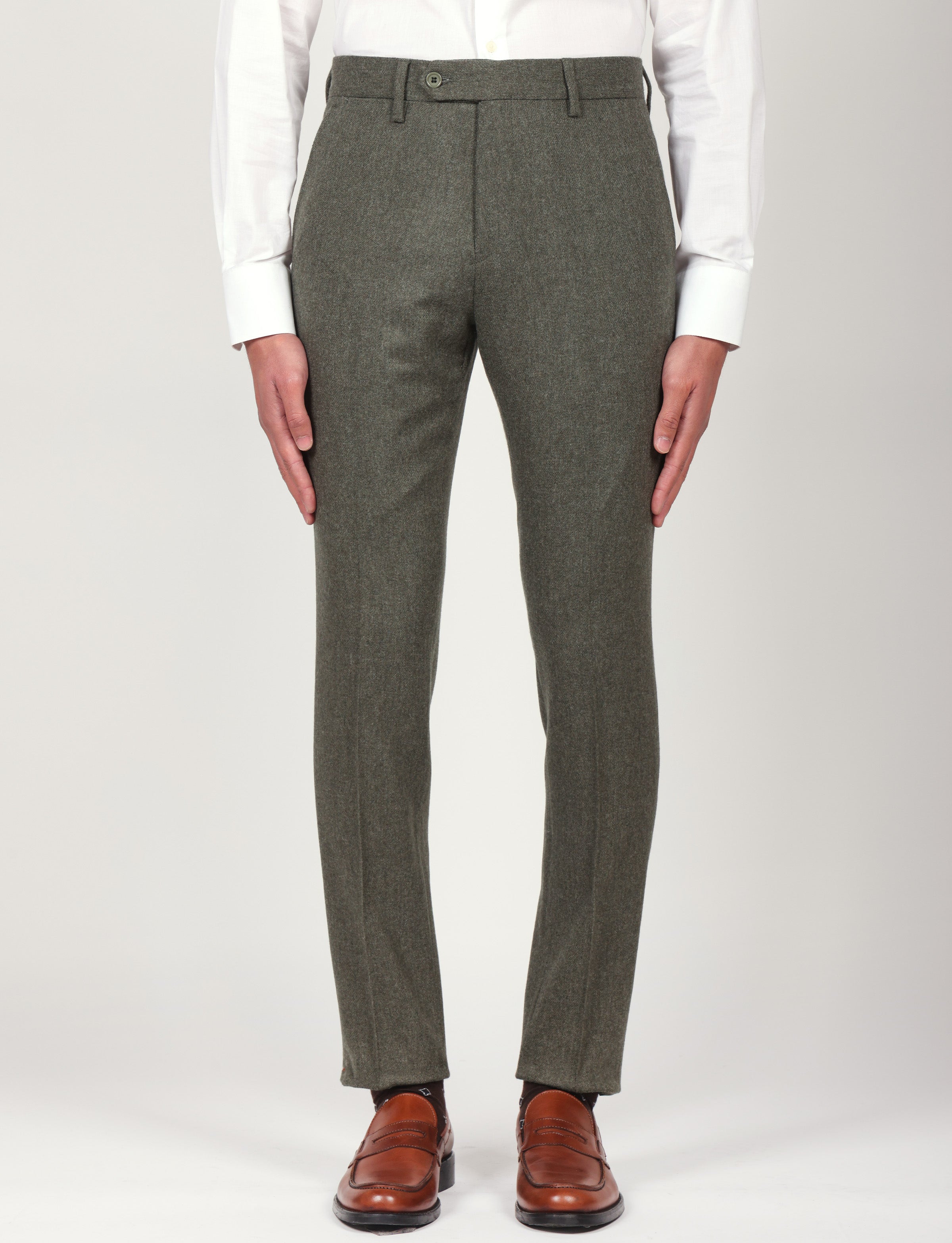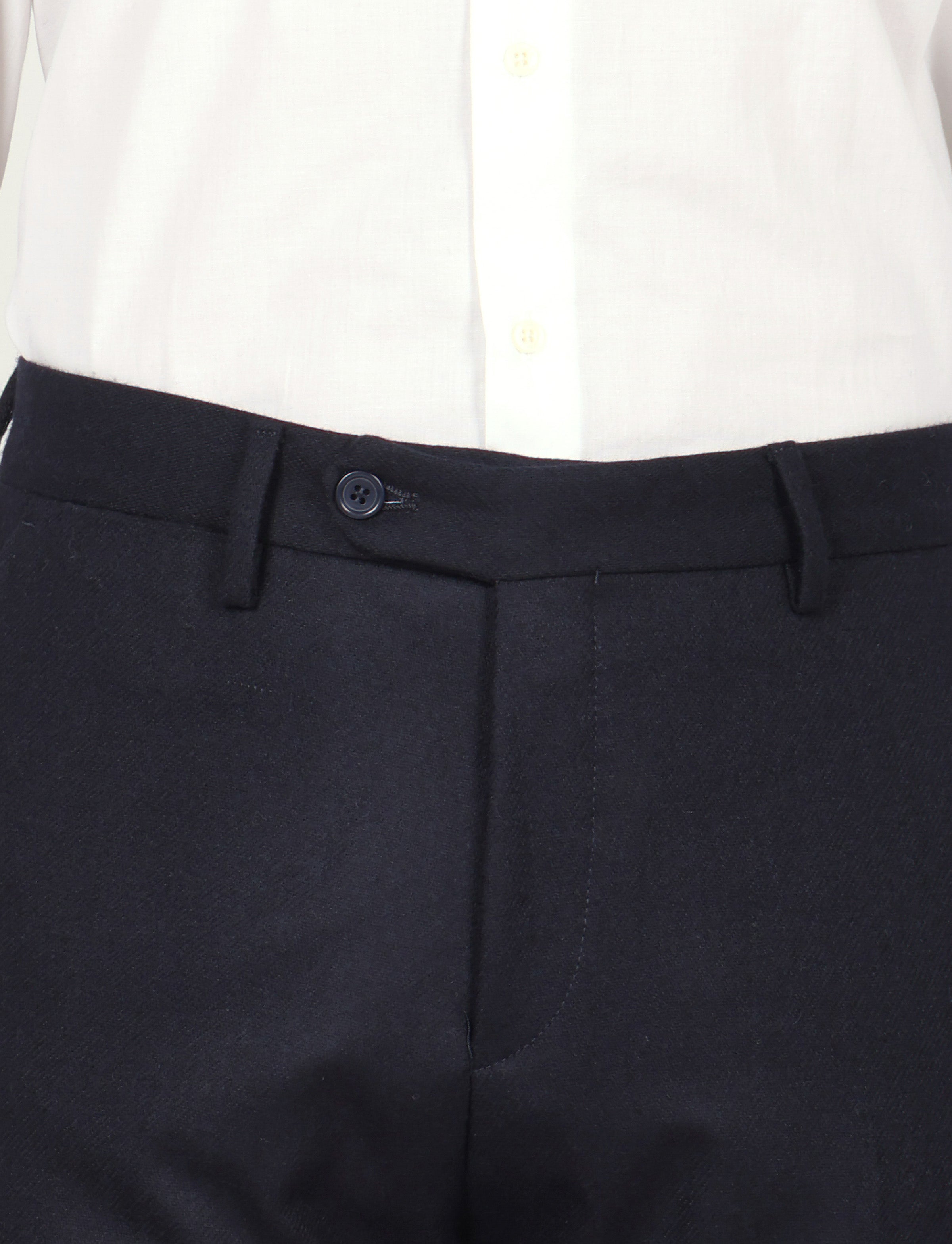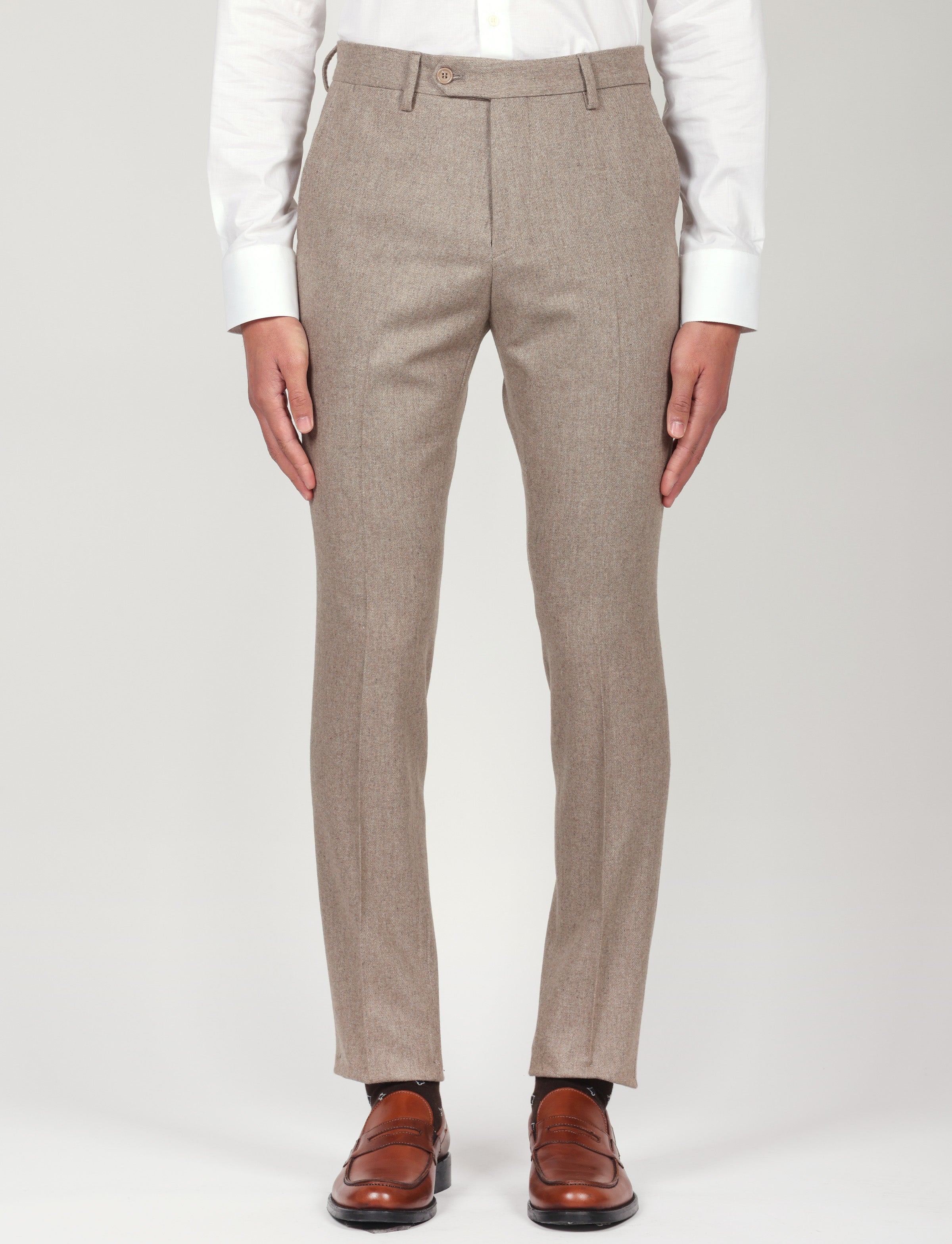 Pantalone in flanella, caldo ed elegante, realizzato con un mix di lana e poliestere per garantire comfort, resistenza e una vestibilità impeccabile. Ideale per outfit classici, business o smart casual.