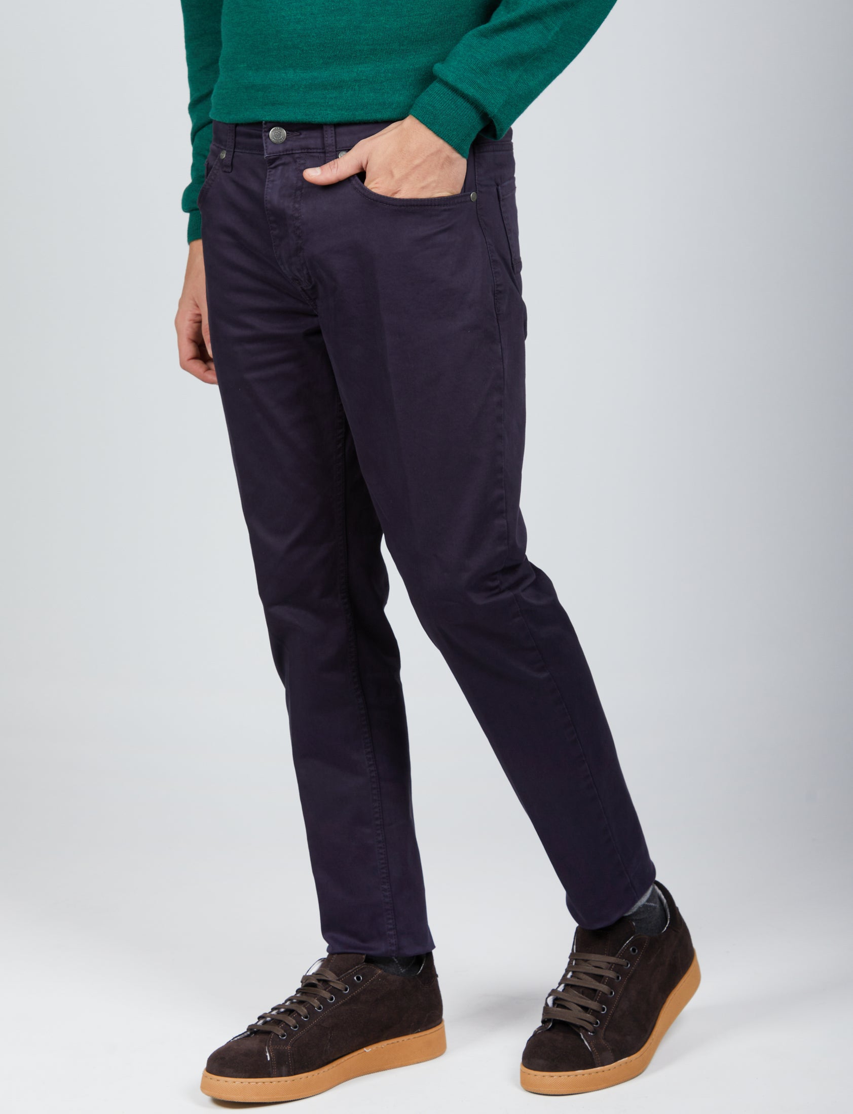 Un grande classico rivisitato in chiave elegante: i pantaloni cinque tasche in cotone raso tinta unita. Morbidi al tatto e leggermente luminosi grazie alla particolare lavorazione del raso, uniscono la praticità del modello denim alla raffinatezza di un tessuto che li rende adatti anche a contesti più curati.