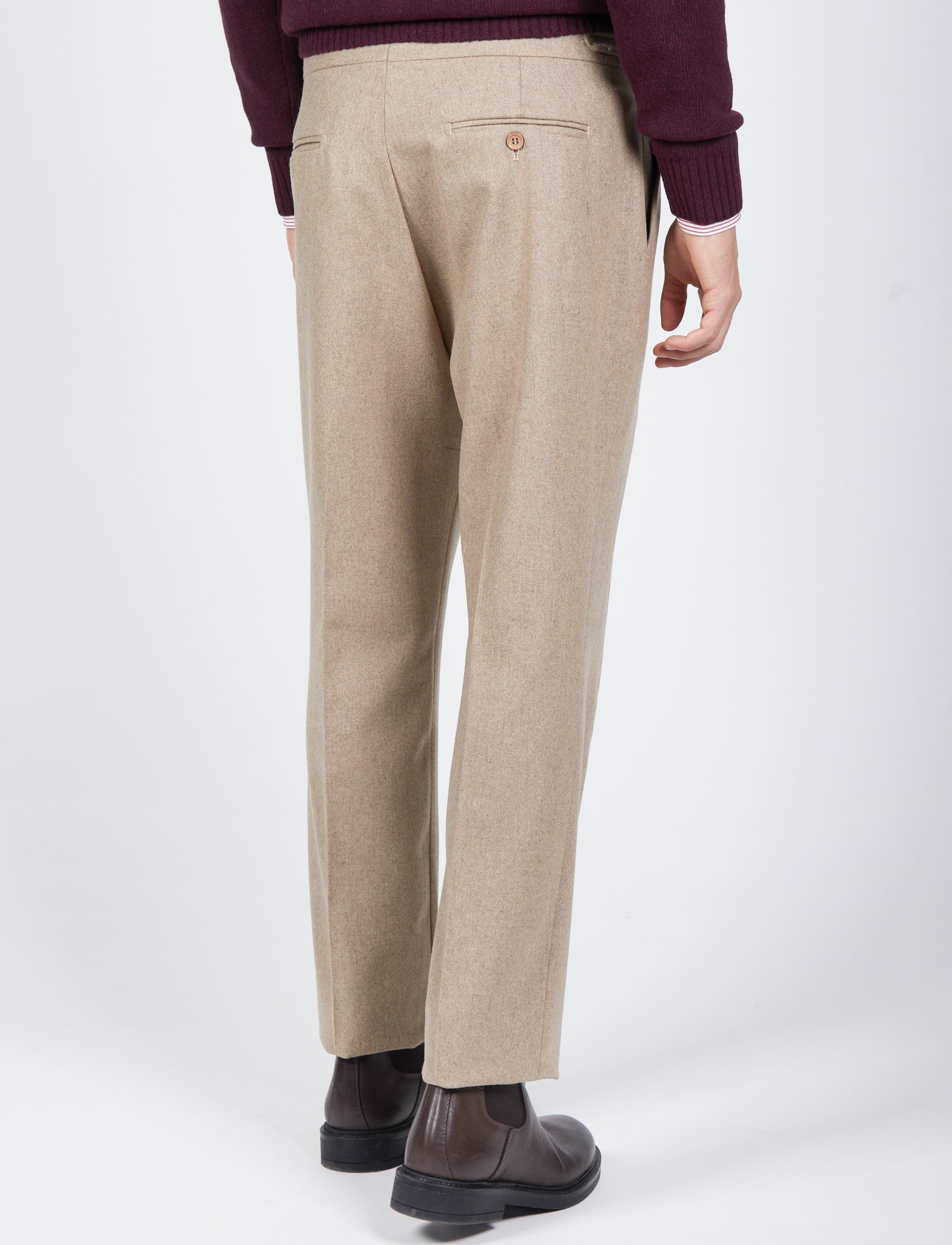 Discover the wool flannel pleated trousers, a versatile and sophisticated piece, ideal for formal and casual chic looks. Made with a warm and soft fabric, it is perfect for the cold season. Pair it with a structured jacket for an elegant outfit or with a turtleneck sweater for a relaxed and classy look.
