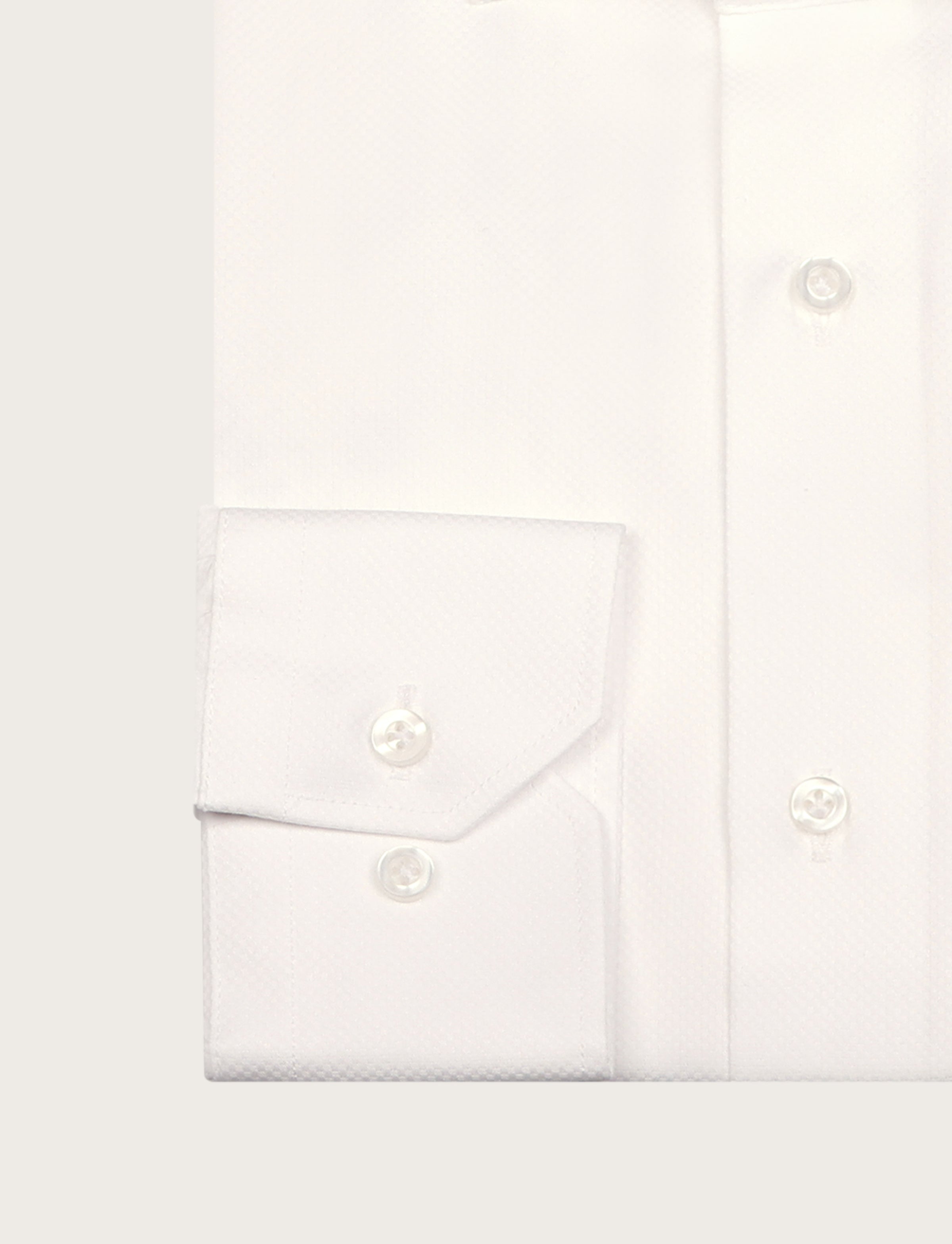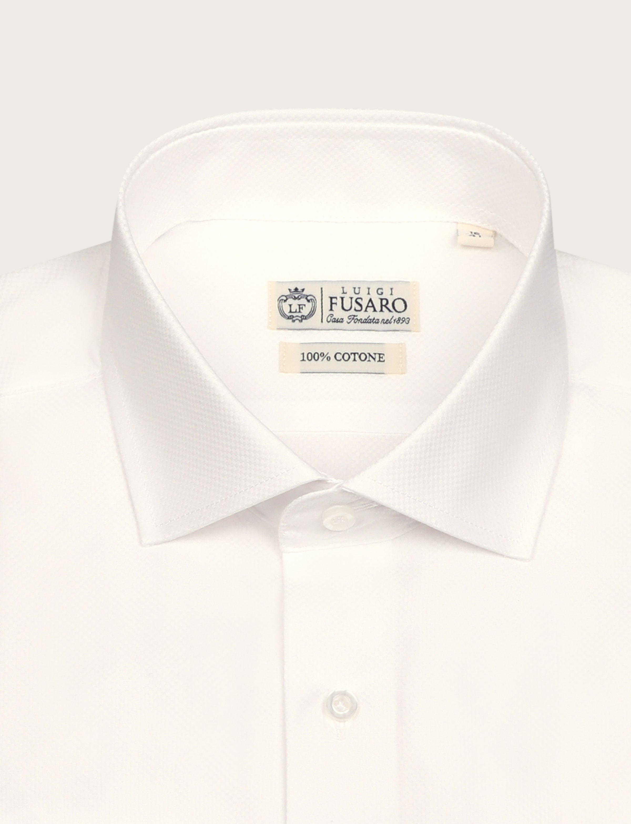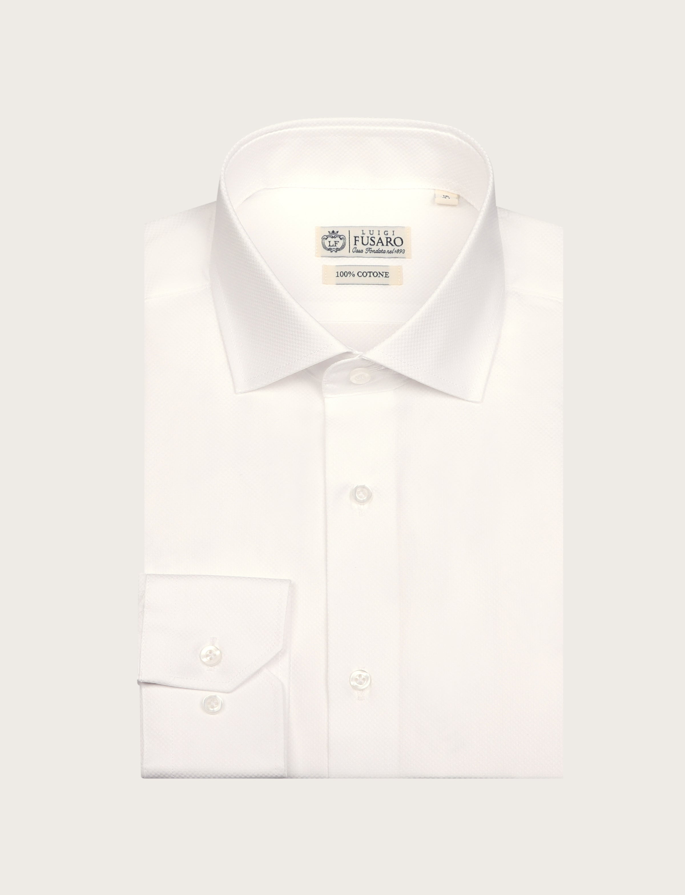 Camicia bianca in cotone dobby dallo stile elegante e raffinato, caratterizzata da una texture discreta e traspirante. Un capo versatile, perfetto per completare look formali e business con naturale eleganza.