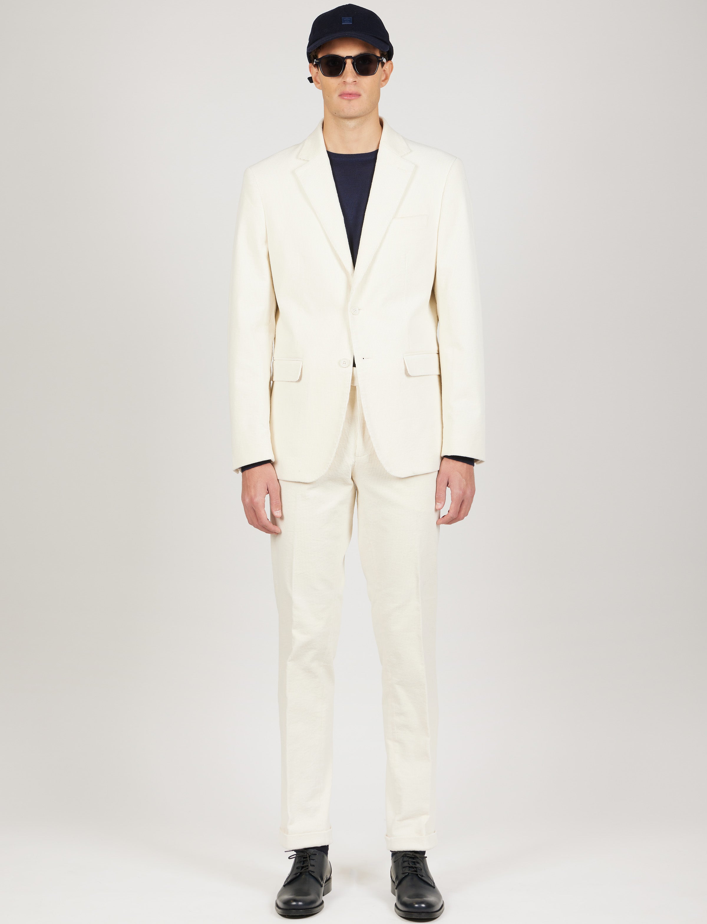 Con pantalone in tessuto diverso per uno spezzato dallo stile contemporaneo