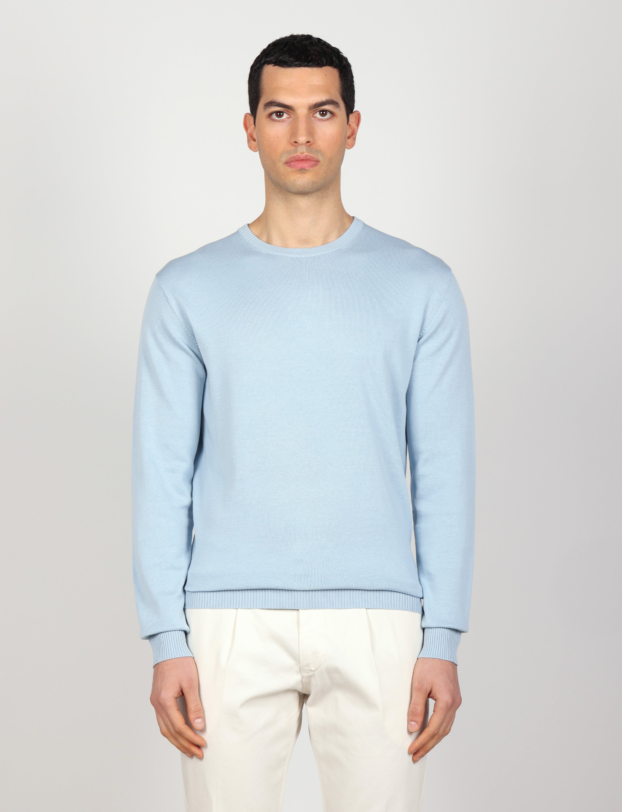 Maglia girocollo in cotone 100% dal design essenziale e versatile, perfetta per un look pulito e contemporaneo. Leggera, traspirante e facile da abbinare, è un capo indispensabile per ogni stagione.