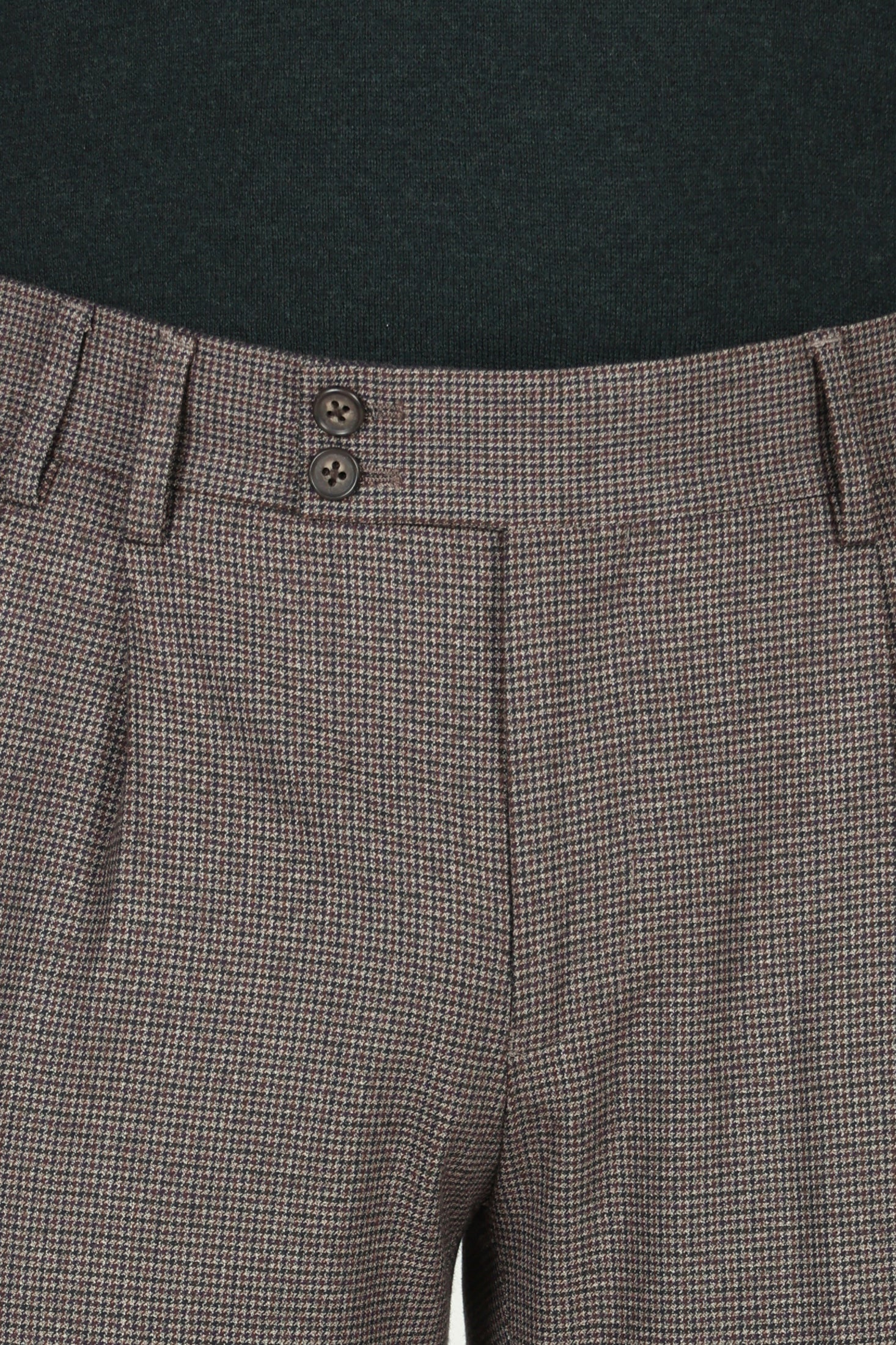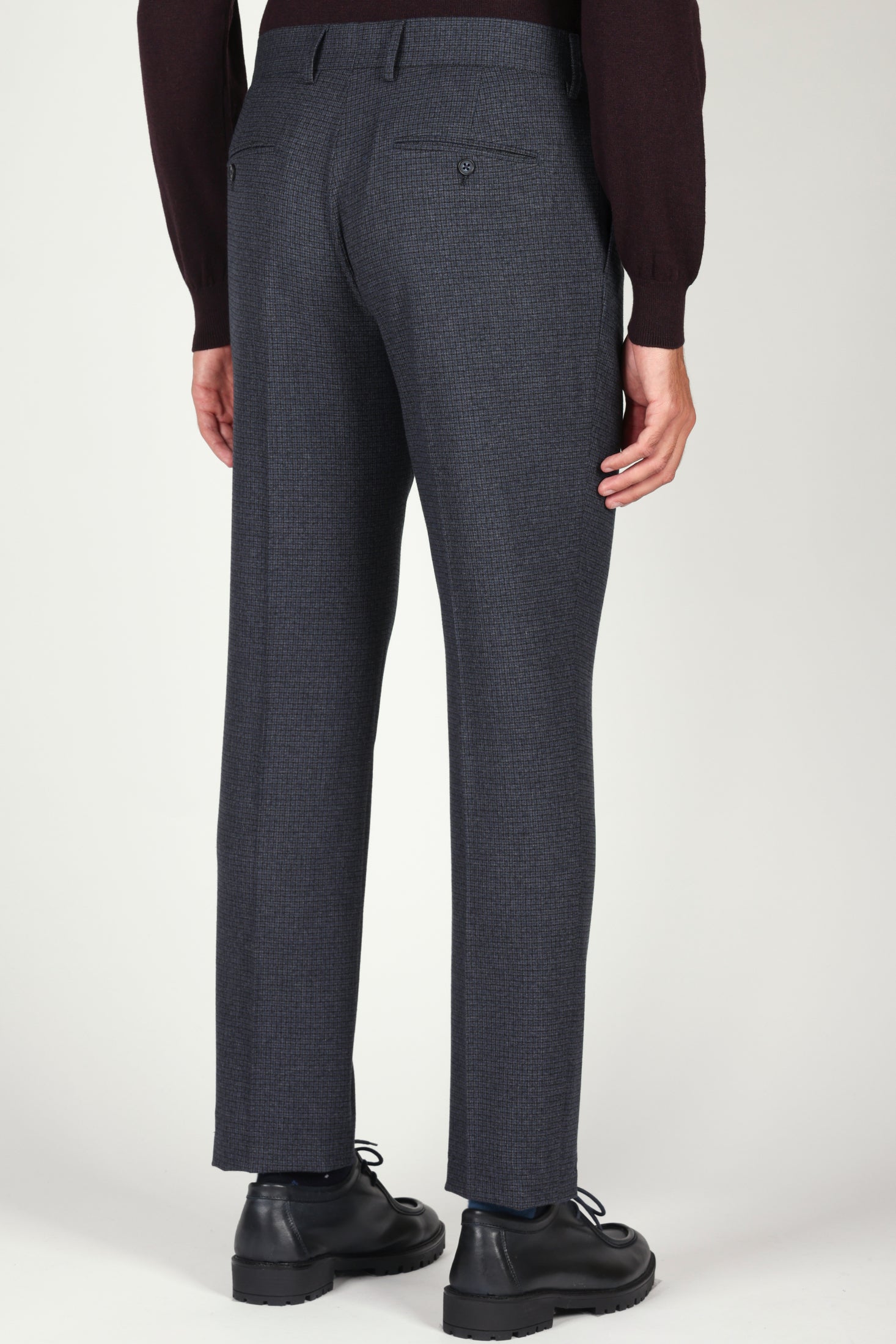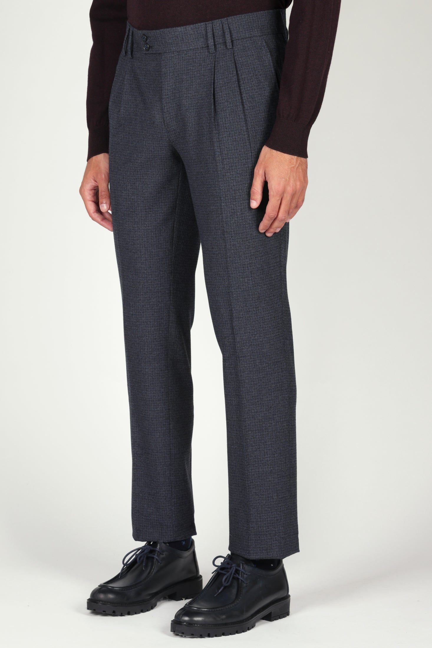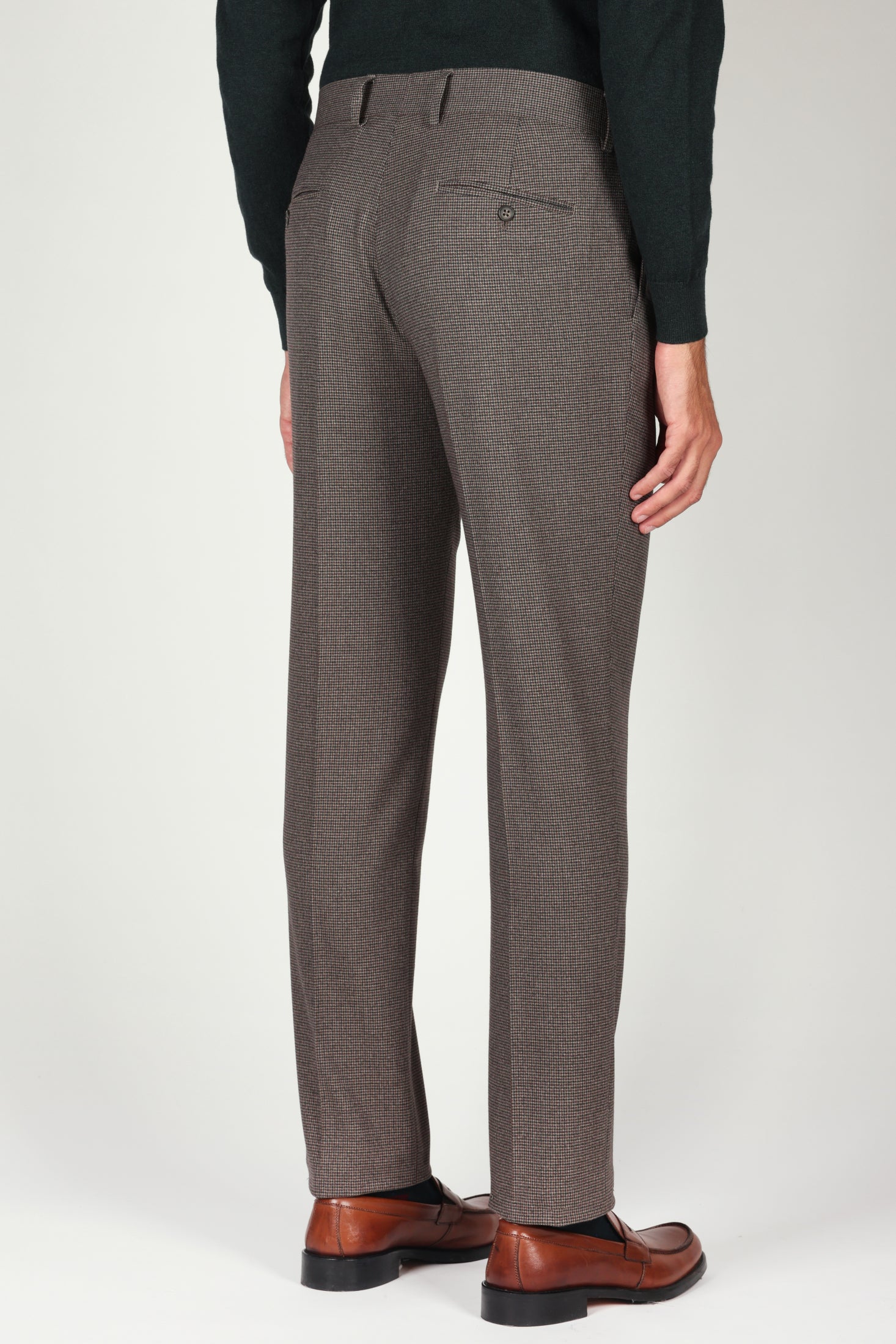 Pantalone con fantasia pied de poule dal taglio sartoriale, perfetto equilibrio tra stile classico e vestibilità contemporanea. Realizzato in tessuto morbido ed elastico, è ideale per chi cerca un’eleganza disinvolta ma curata in ogni dettaglio.
